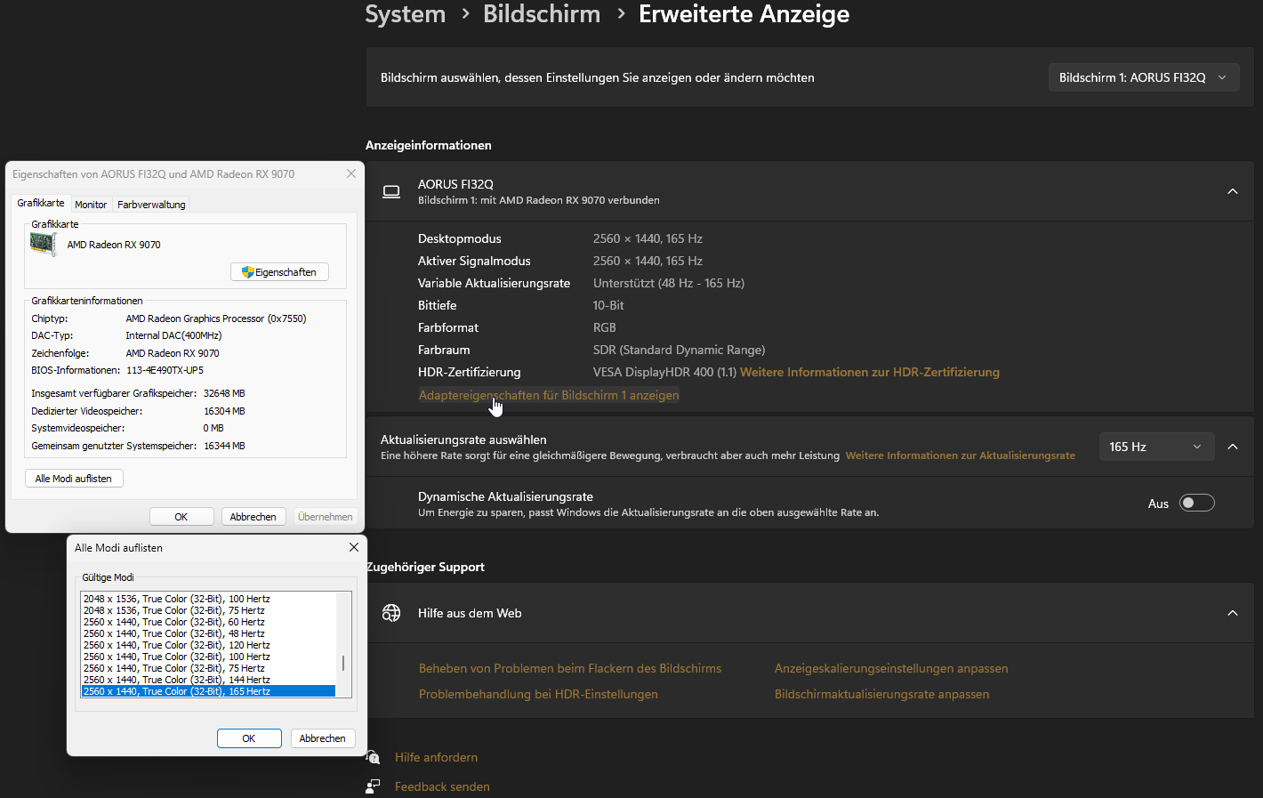 Weiteres Update: Wenn ich auf Treiberversion 25.10.2, also der Version, auf der alles läuft wie es soll, die Farbtiefe von 10bpc auf 8bpc reduziere (!), tritt das gleiche Problem wie unter den neueren Treiberversionen auf: Nur noch 60Hz-Ausgabe.