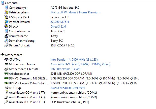 die Kiste ist einfach zu alt, aber XP sollte locker noch möglich sein. Treiber sollten ja beim Mainboard-Hersteller downloadbar noch sein.