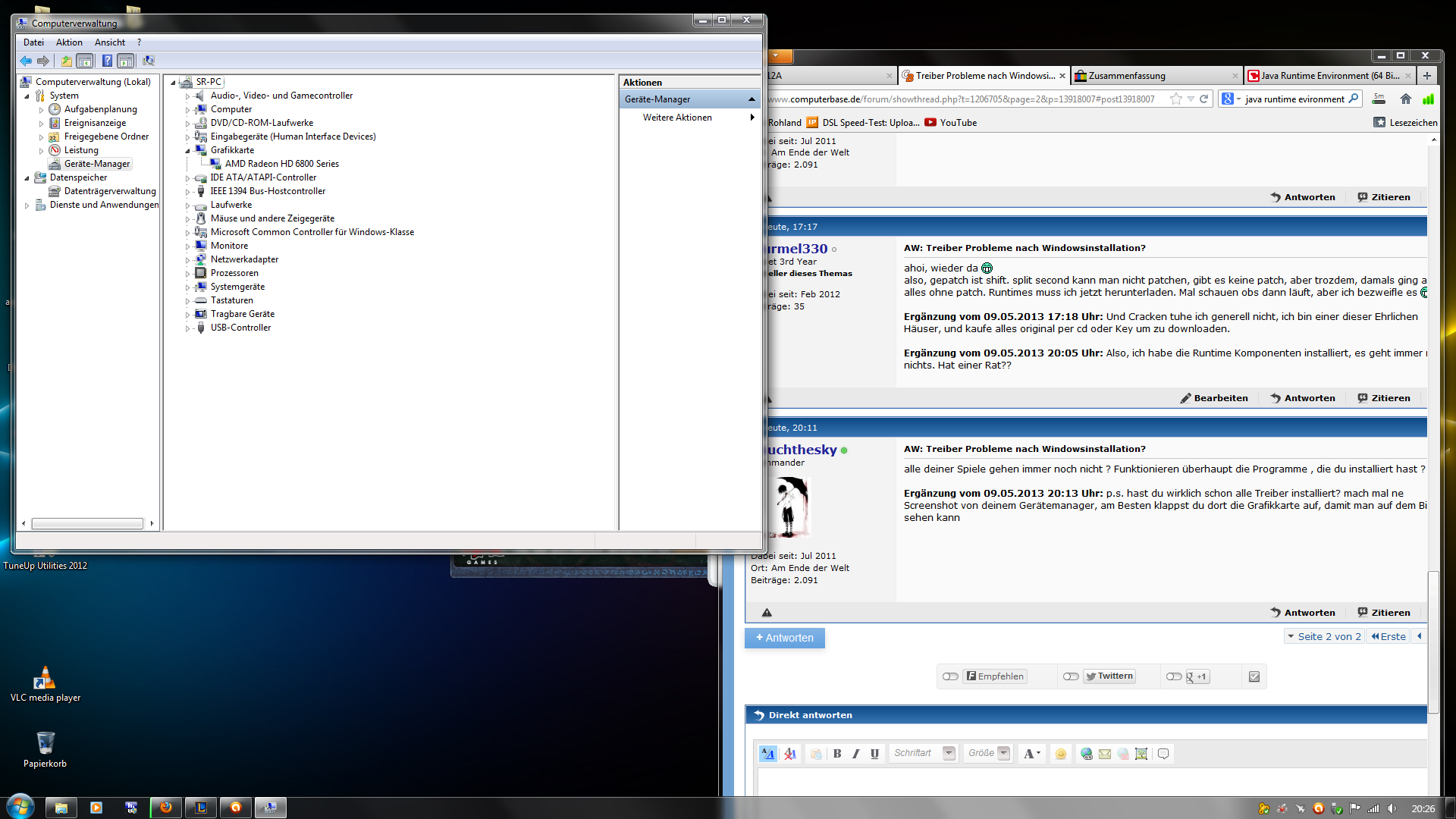 p.s. hast du wirklich schon alle Treiber installiert? mach mal ne Screenshot von deinem Gerätemanager, am Besten klappst du dort die Grafikkarte auf, damit man auf dem Bild sehen kann