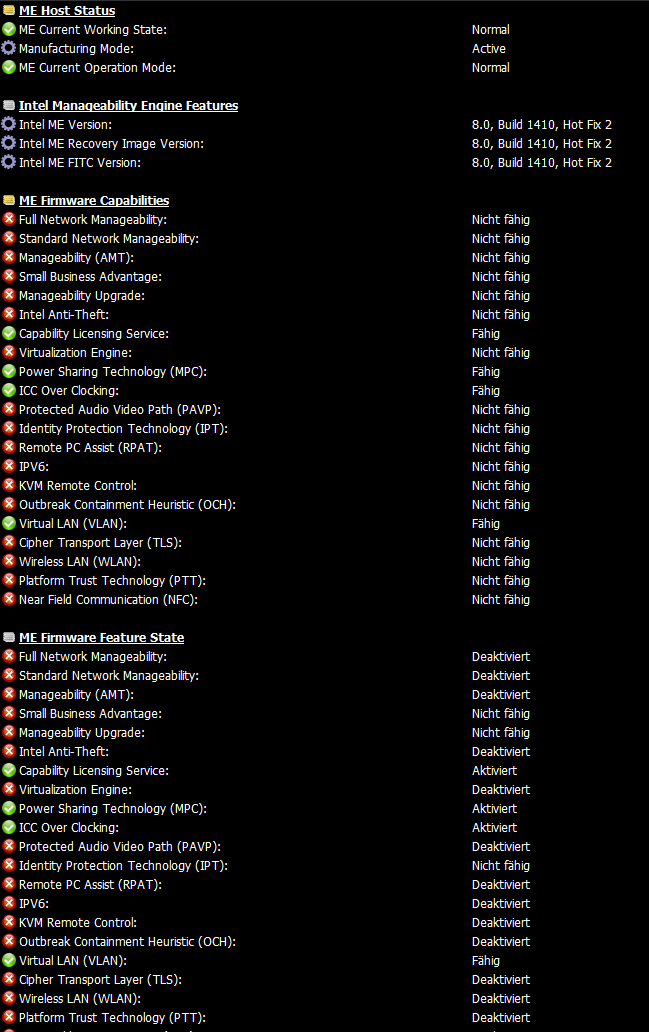 @madmax2010 hier ein beispielbild meines asus p8p67 deluxe, welches ein bios draufhat, welches ich mit dem me-cleaner script bearbeitet habe. wie man sieht, ist die me aktiv, nur halt sehr beschnitten in der funktion.
