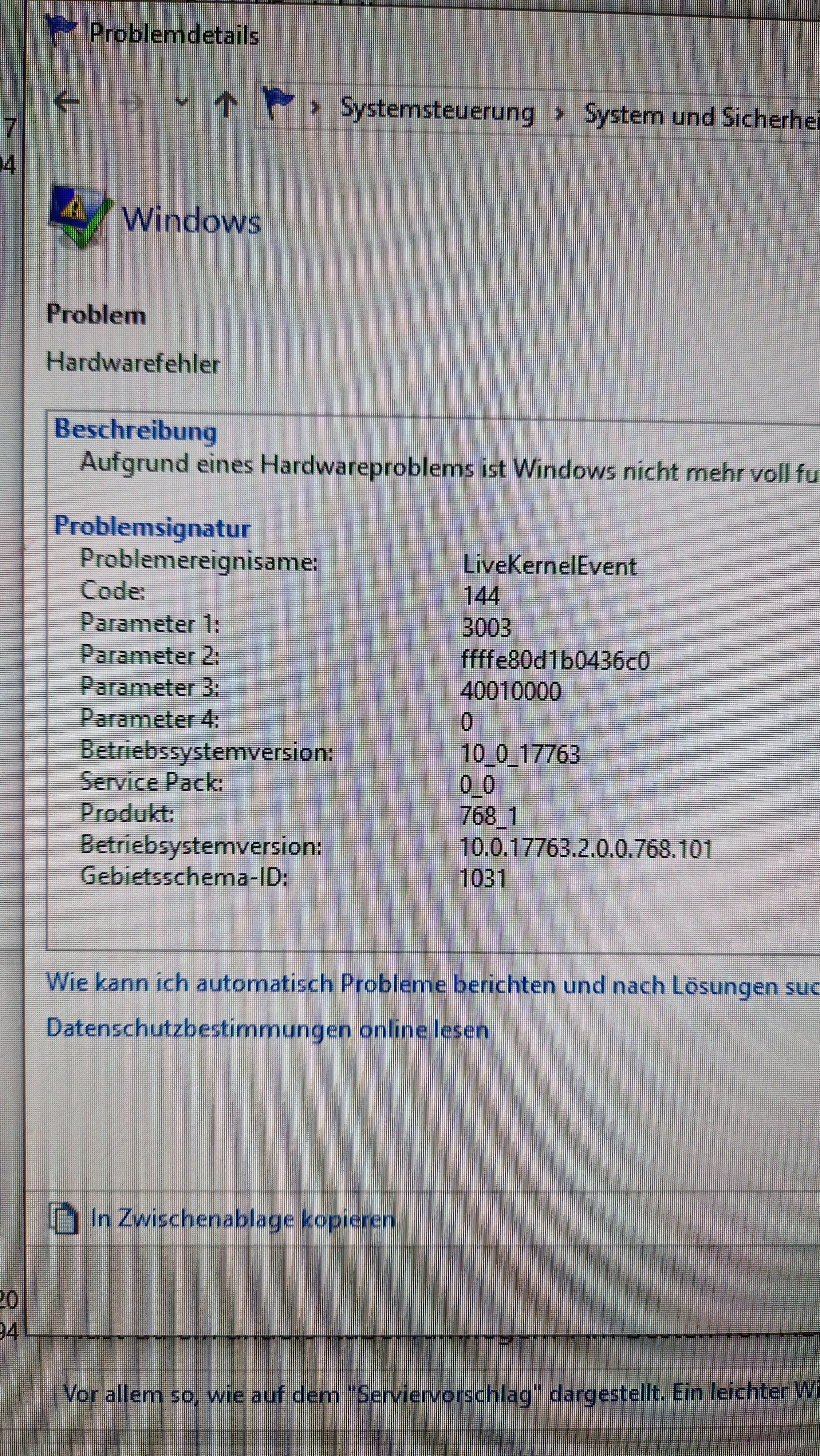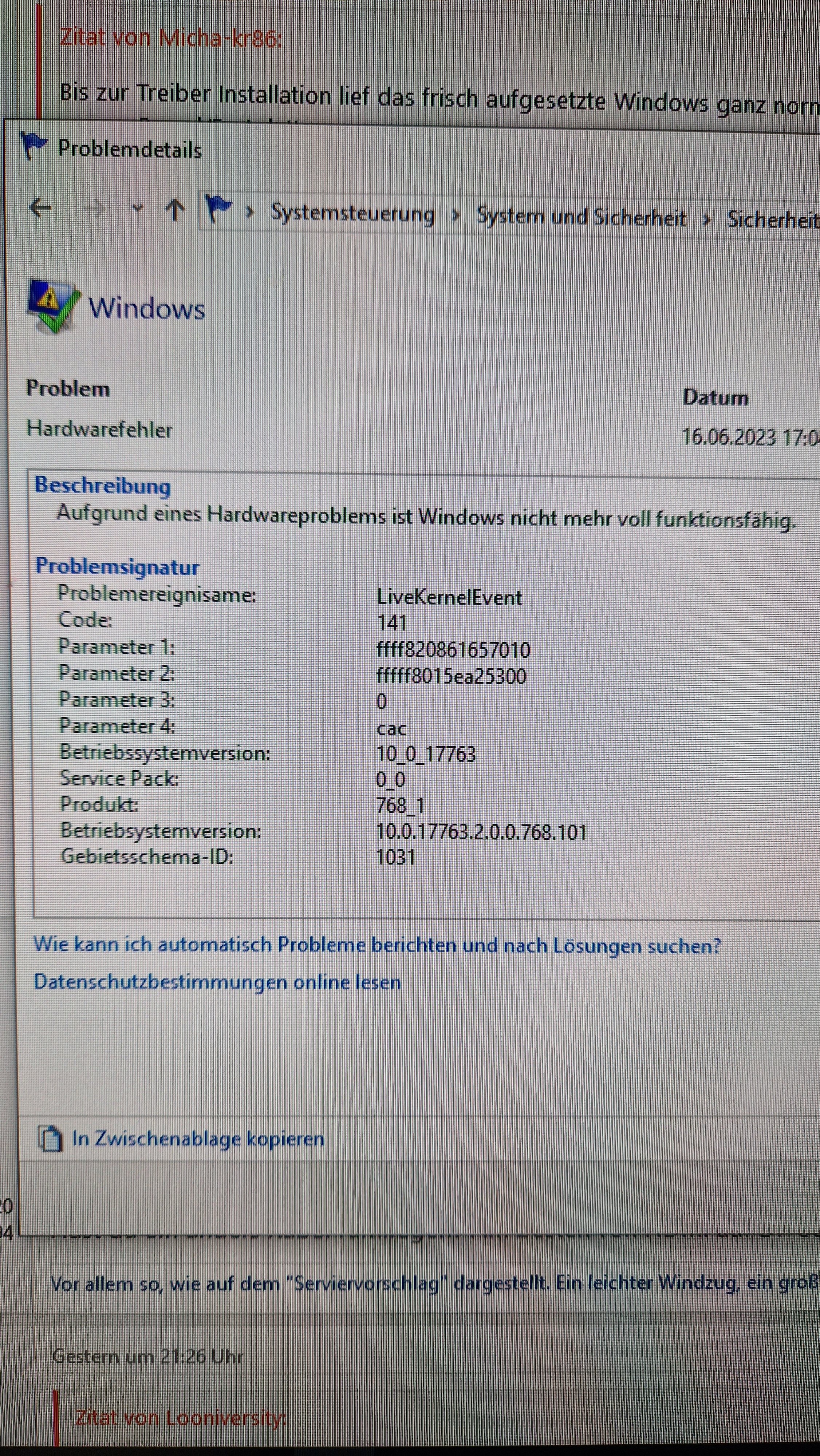 Wird aber wohl immer der gleiche sein: LiveKernelEvent -141.