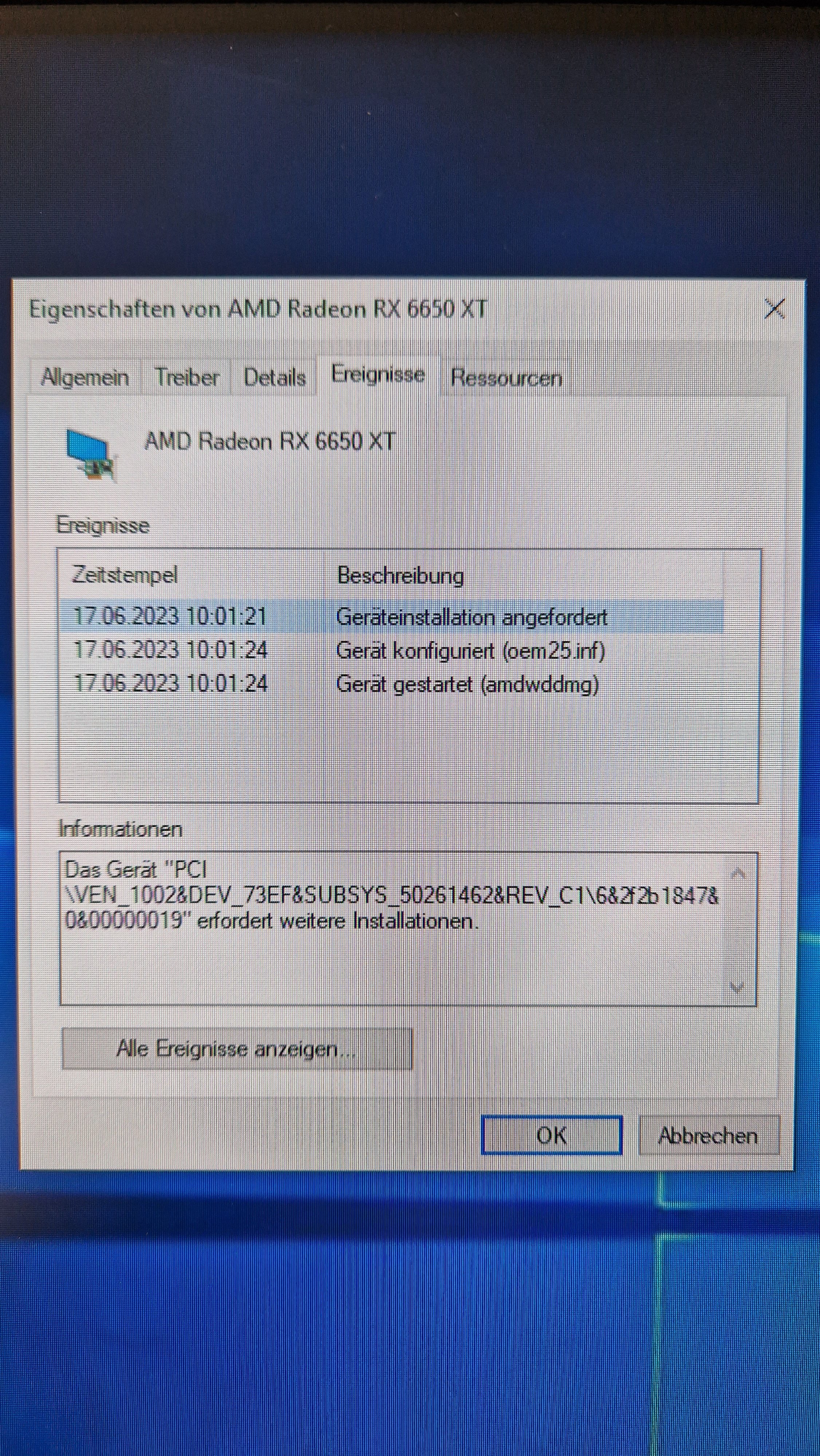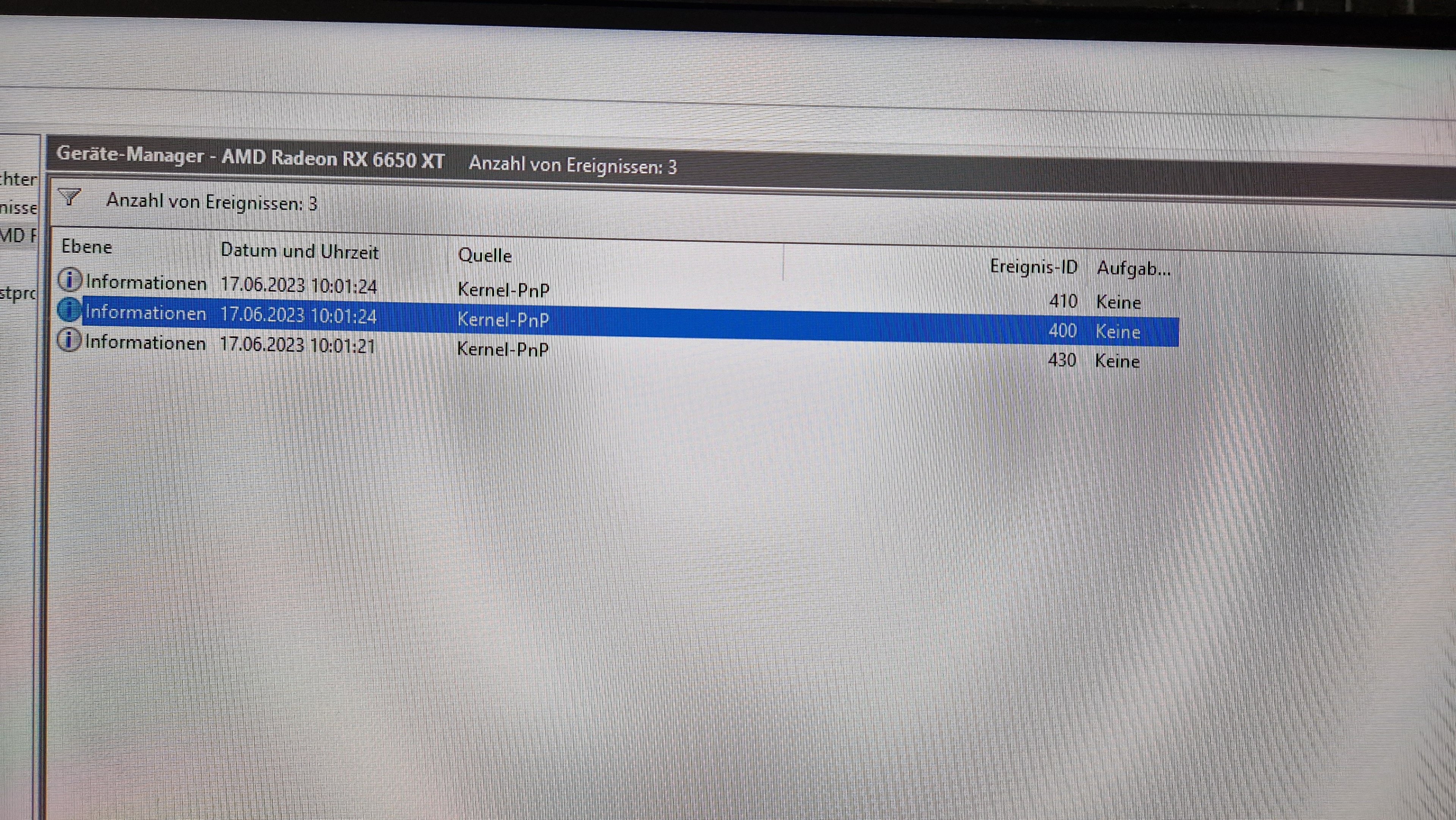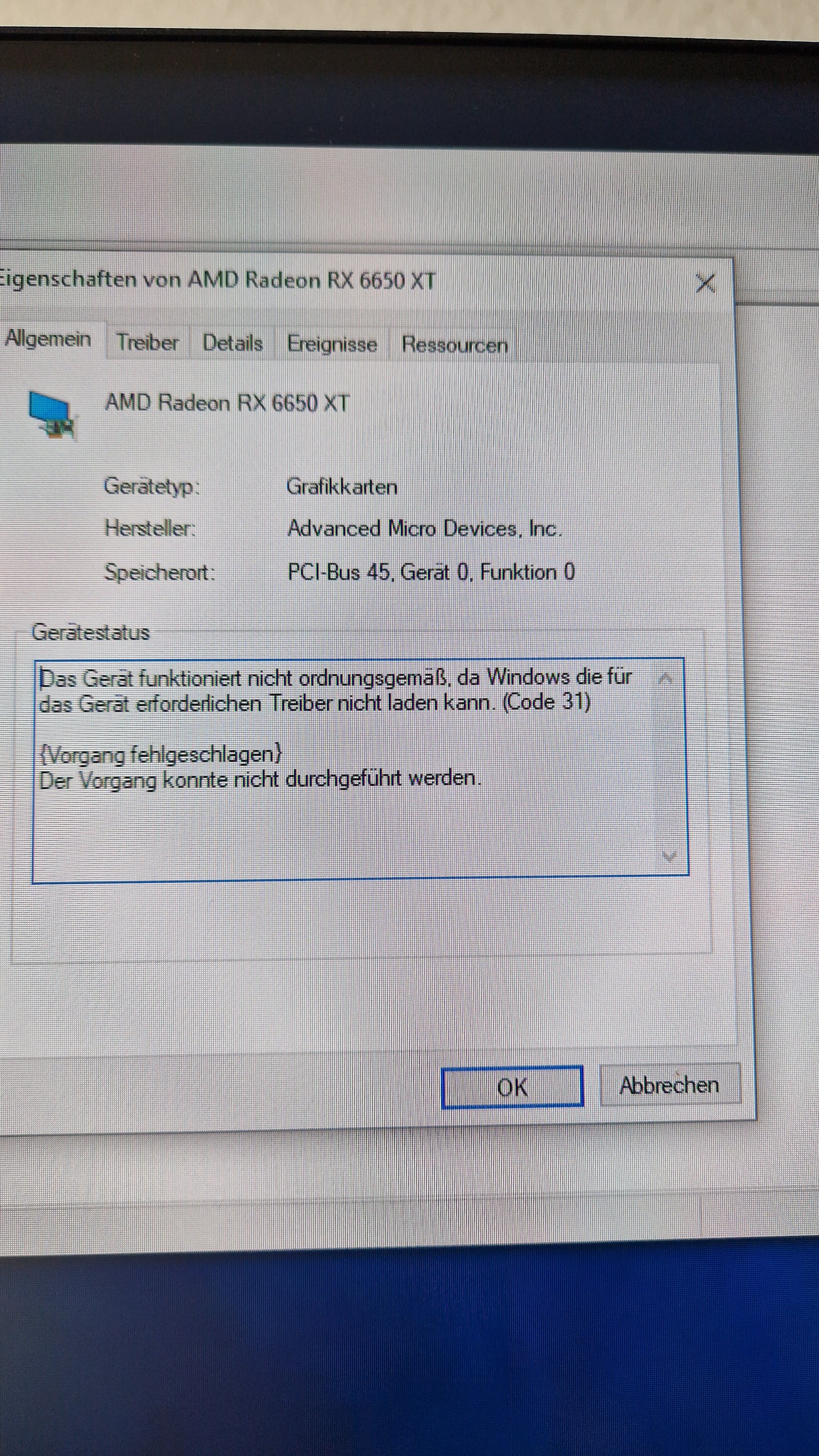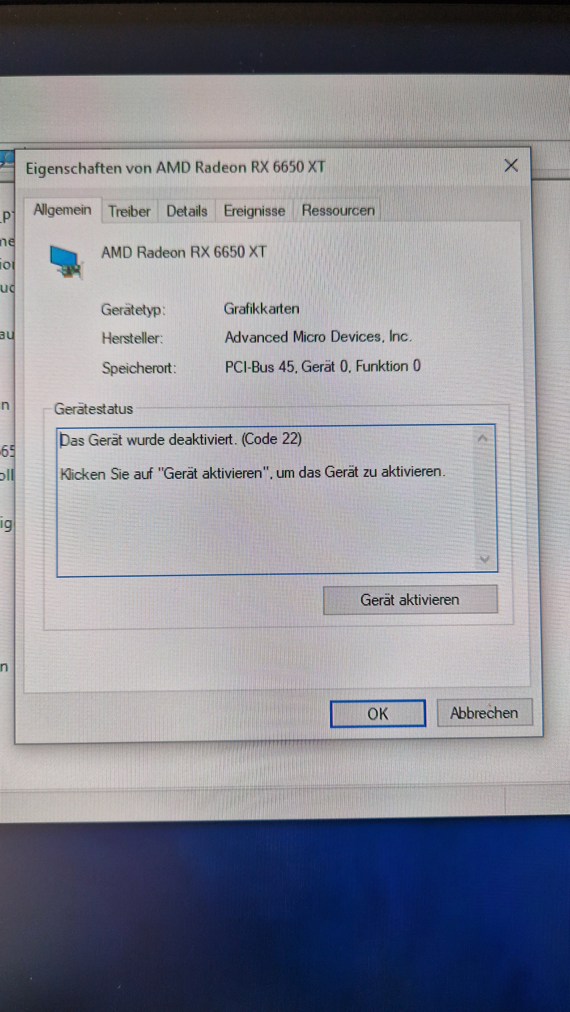 Ja direkt nach der Installation der Treiber war wieder kein Bild. Ich kann sie aktivieren und dann schaltet Windows sie direkt wieder aus mit dem Hinweis: Karte meldet Fehler und wurde abgeschaltet.