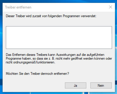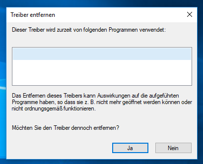 Wenn ich dann Ja auswähle dann schließt sich das Fenster aber der Treiber verschwindet nicht.