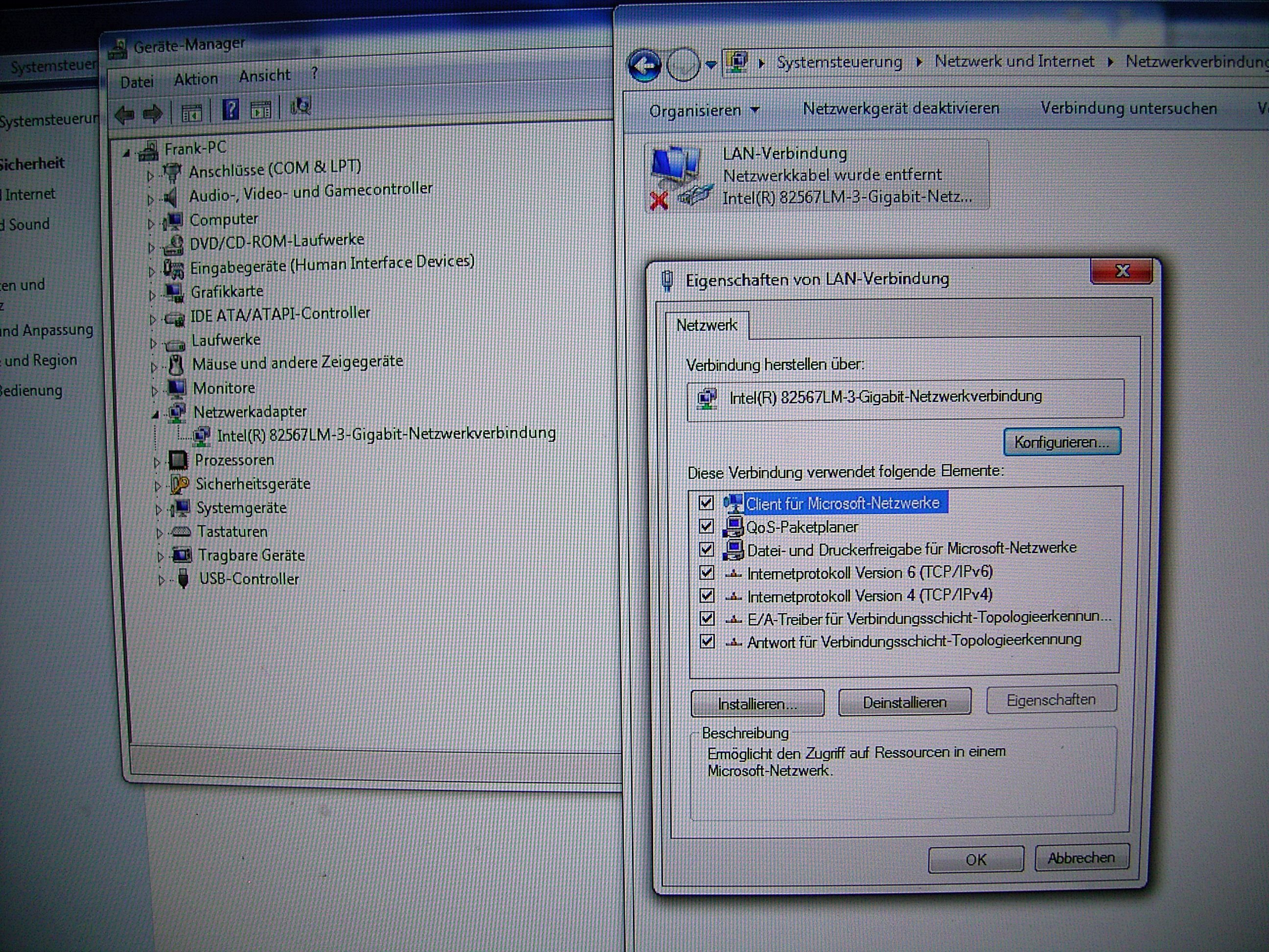 -nach Neuinstallation von win7 wird das eingesteckte Netzwerkkabel nicht erkannt.