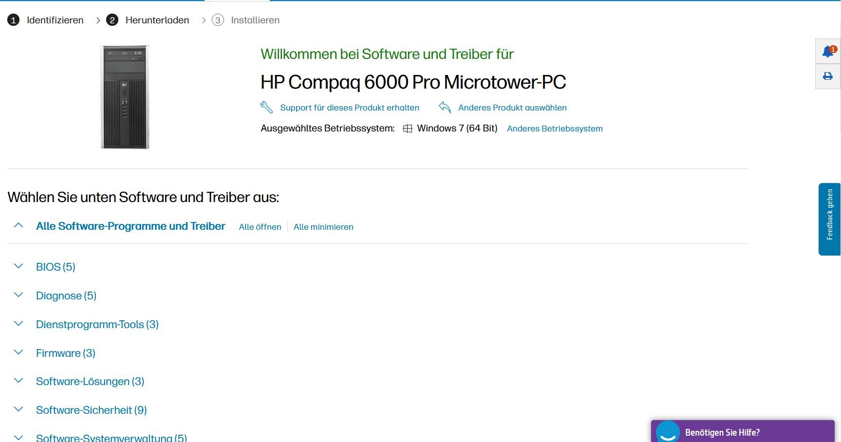 -das Problem ist, wenn ich beim Hersteller den Treiber für den HP Compaq 6000 Pro Mikro Tower runterladen will,