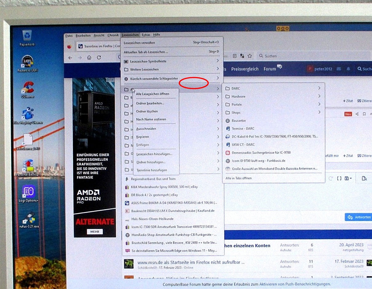 Ich nutze den Firefox 113.02 und habe mich dazu hinreißen lassen eine zusätzliche Trennlinien bei den Favotitenordner einzufügen.