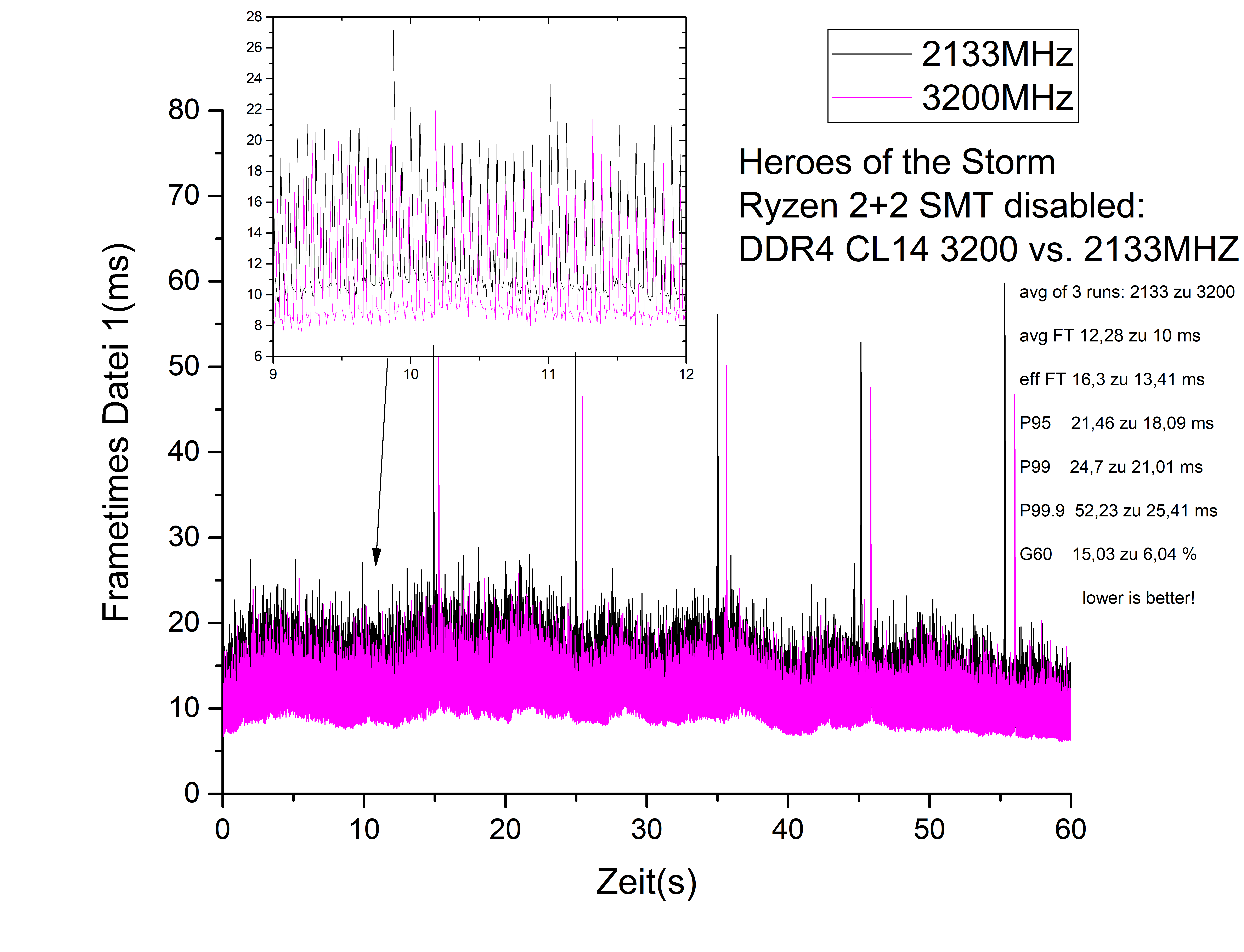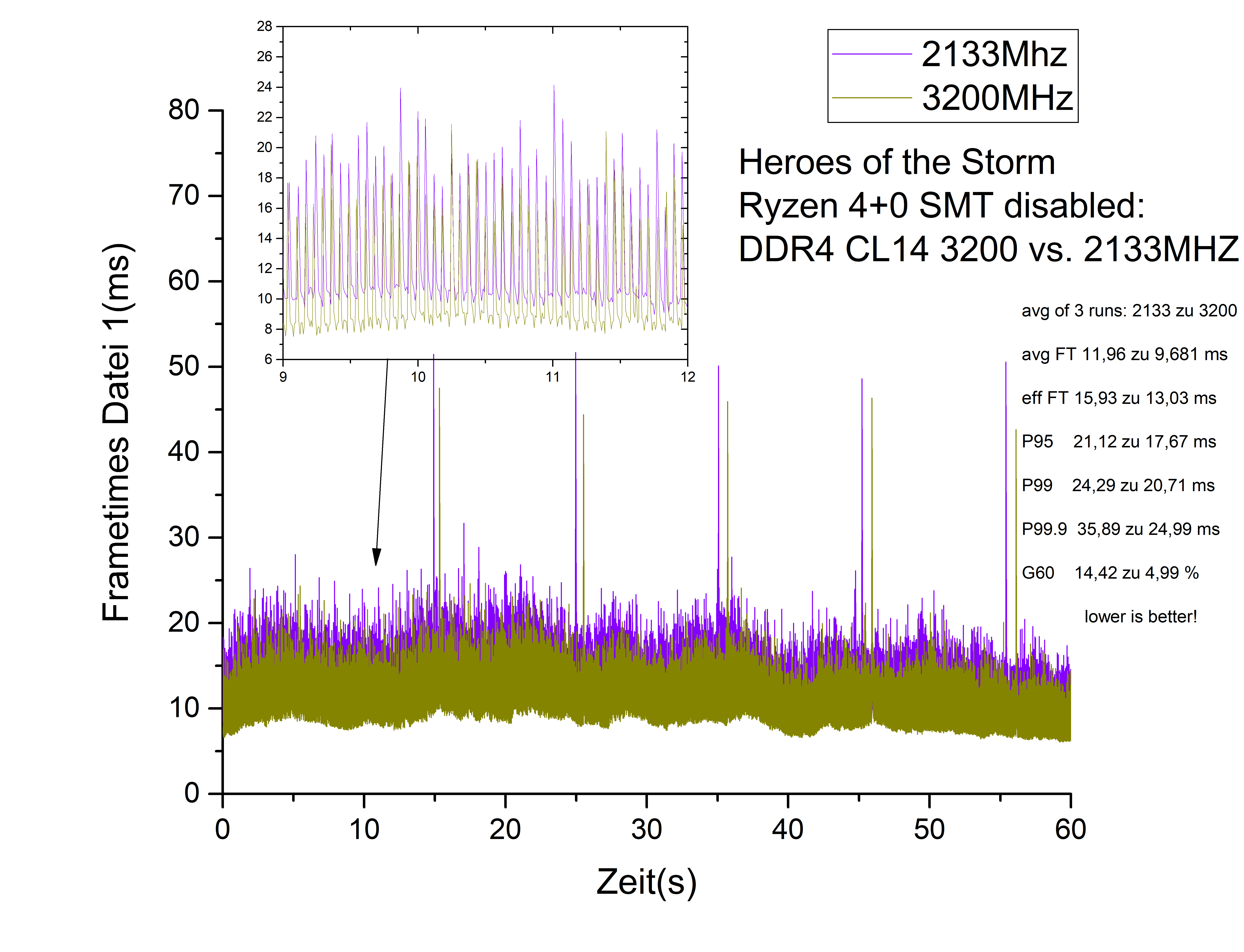 Bei den P99.9 Werten von 2133 in Heroes, sieht man ganz gut die Nachteile, die Percentile Werte manchmal haben....der 99.9er Wert ist massiv anders obwohl die eigentlichen Messungen nur geringe Unterschiede zeigen.