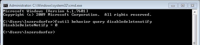 Kann mir jemand sagen ob Windows7 in Verbindung mit einer SSHD die TRIM-Funktion aktiviert (cmd -> fsutil behavior query disabledeletenotify -> 0)?
