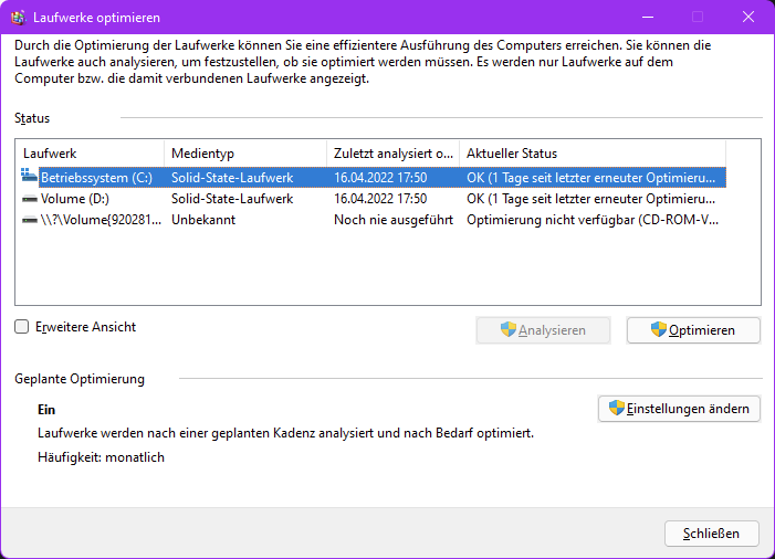 Auf einer SSD zeigt der an, dass sie aktiviert ist. Auf der anderen folgendes: