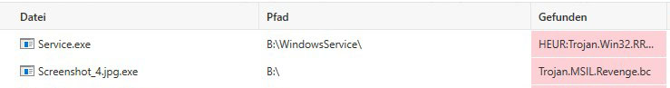 Und der Trojaner hat einen neuen Pfad angelegt wo jetzt meine ganzen gesicherten Dateien drinnen sind B:/WindowsService.