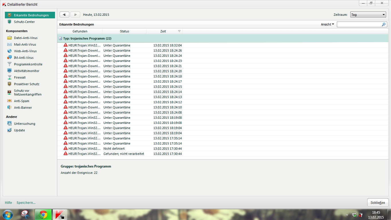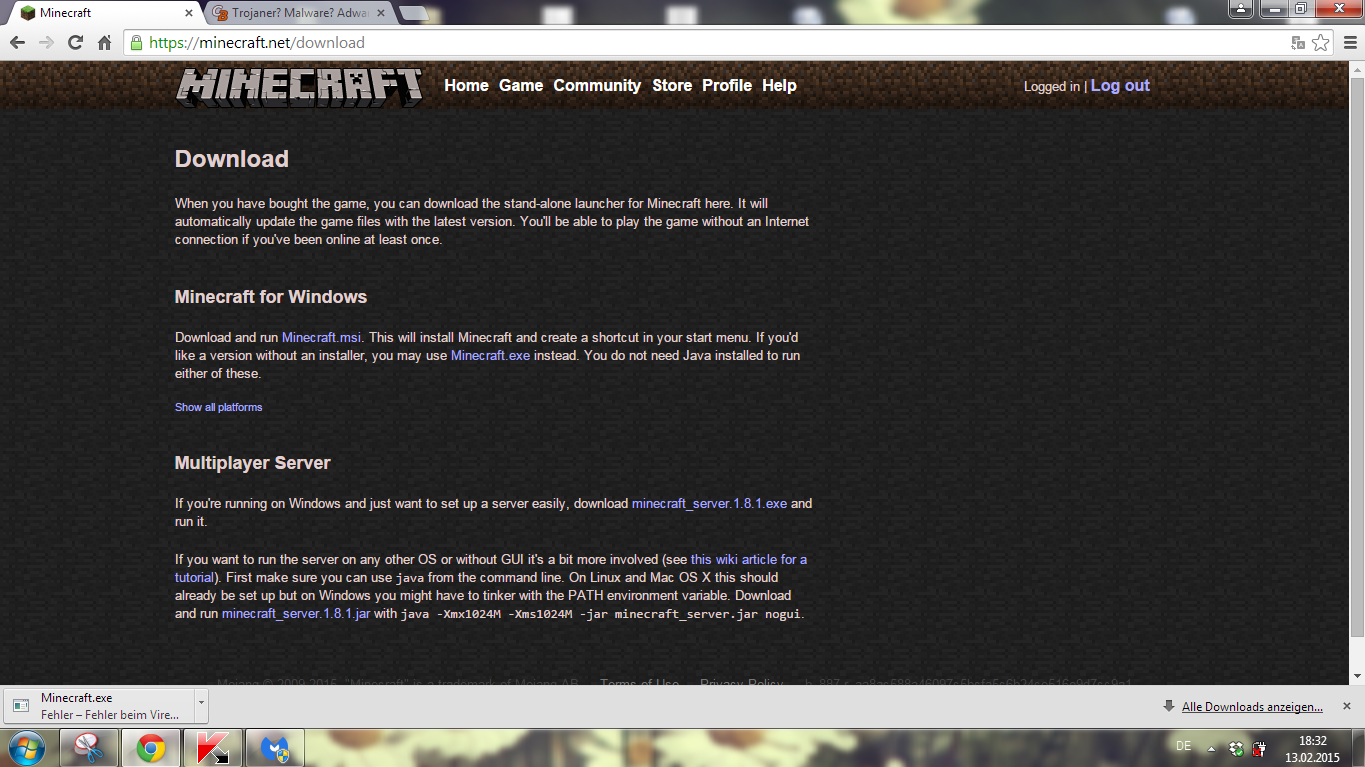 vor einiger Zeit habe ich von Kaspersky die Nachricht bekommen, dass ich einen Virus (oder Malware... kann das nicht einschätzen) habe. Er heißt Trojan.Win32.Generic und ich weiß nicht was ich tun soll. Ich hab schon im Internet geguckt und versucht mir AdwCleaner runterzuladen, aber alles was ich downloaden will wird von Kaspersky geblockt und als dieser Virus gemeldet. Begonnen hat das als ich Minecraft spielen wollte und es ein Update gab. Ich hab also auf den Link im Startmenü von Minecraft angeklickt (das was sich öffnet wenn man doppelt auf das Minecraft Logo klickt , also nicht das Hauptmenü im Spiel sondern das Startmenü vor dem Spiel) um mir die neue Version runterzuladen die ohne Java läuft. Da hat mir Kaspersky erstmals diesen Fehler gemeldet. Bitte um Hilfe