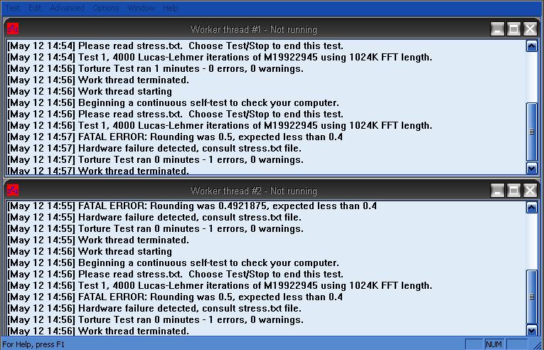 Wollte dann jetzt mal ausprobieren ob er auch höher dreht bei Last von daher mal Prime Toture Test gestartet aber nach ein paar Sec oder Min kommt das hier (siehe Anhang) Hardware Fehler?!