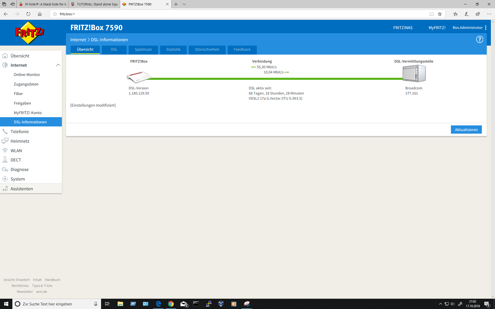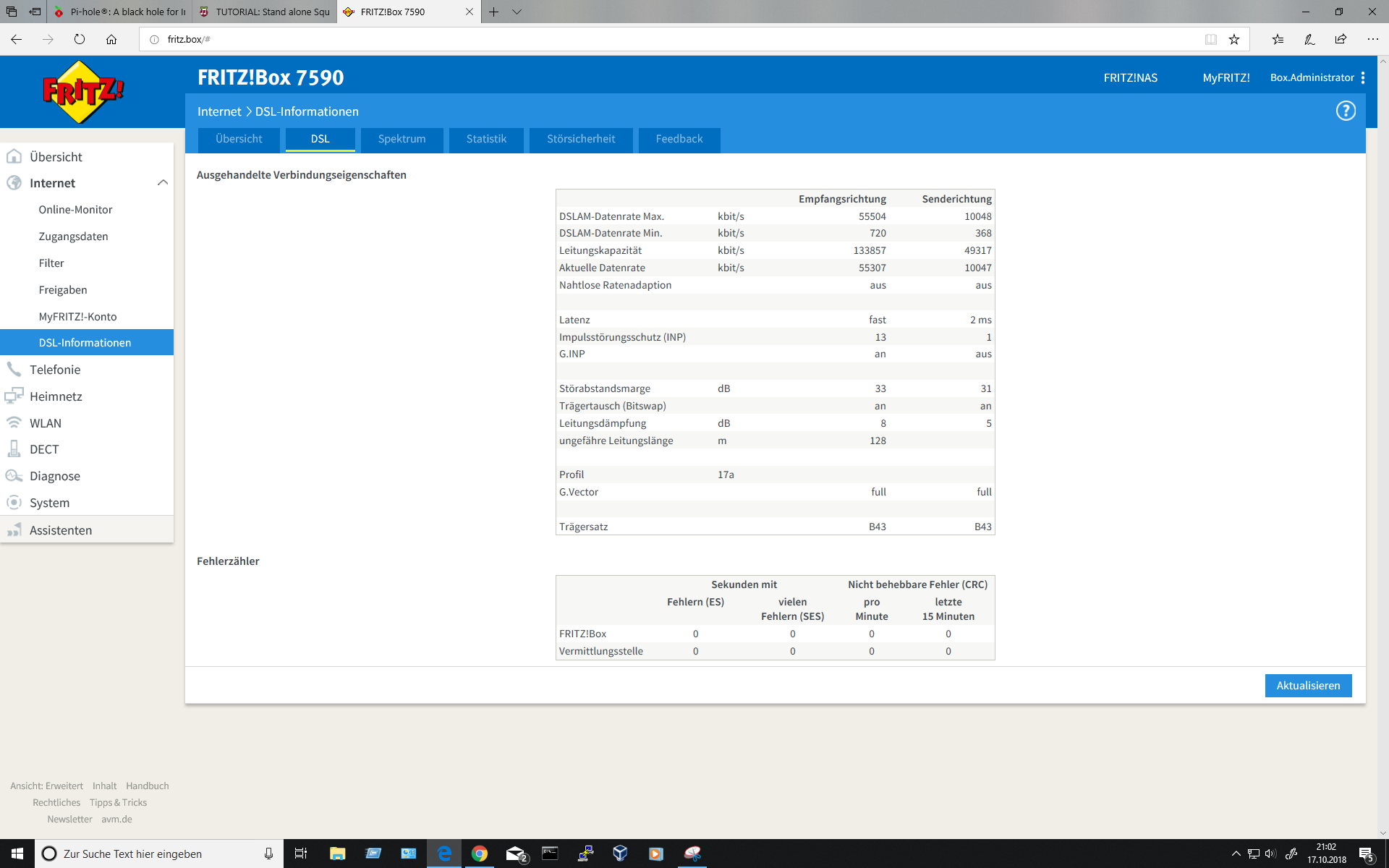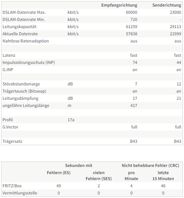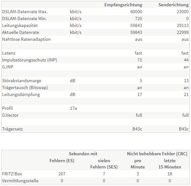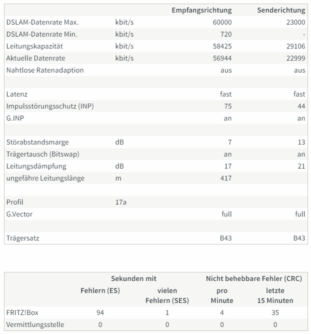 aber davon abgesehen, ich möchte niemandem zu nahe treten, aber das sieht mir doch stark nach einem physikalischen problem der leitung aus. mit intakter leitung sollte es so wie beim anschluß bei mir zu hause aussehen (in dem fall eine 7590, das ist aber für das problem vermutlich irrelevant). nach einzug in meine aktuelle wohnung hatte ich ein ähnliches problem, das hat dann ein kumpel, der techniker bei der telekom ist und hier auch mal aktiv war, gelöst, eben ein leitungsfehler. seitdem, inzwischen über 2 jahre, hatte ich nicht einen ausfall, nicht mal einen einzelnen fehler.