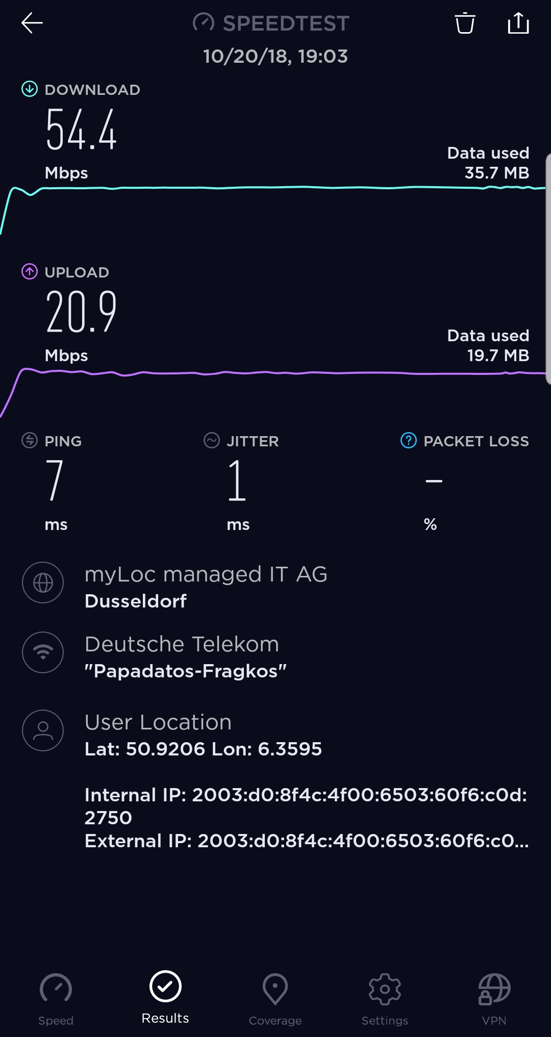 Werte lasen sich allesamt super auf seinem gerät. Hatte mir die Uploadgeschwindigkeiten nicht gemerkt aber beim draufgucken habe ich zu dem Zeitpunkt nichts unnormales festgestellt.