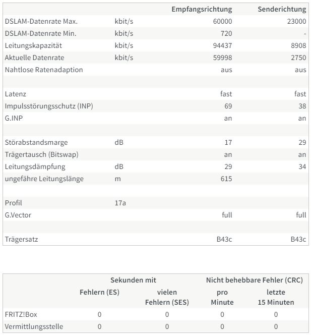 - Messung FB7490: 94.700 Kbit/s down; 2750 Kbit/s up