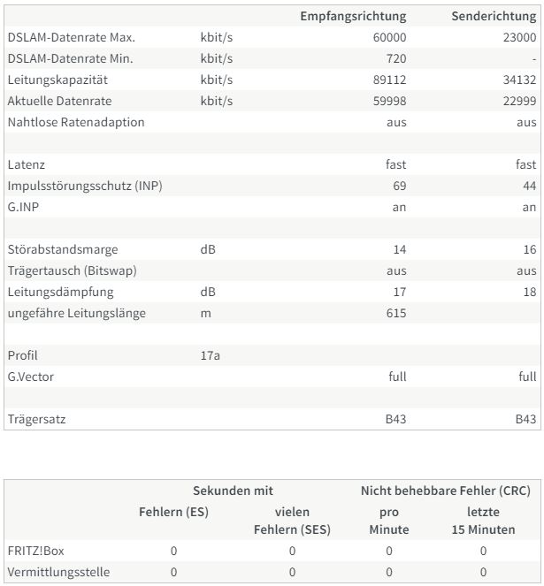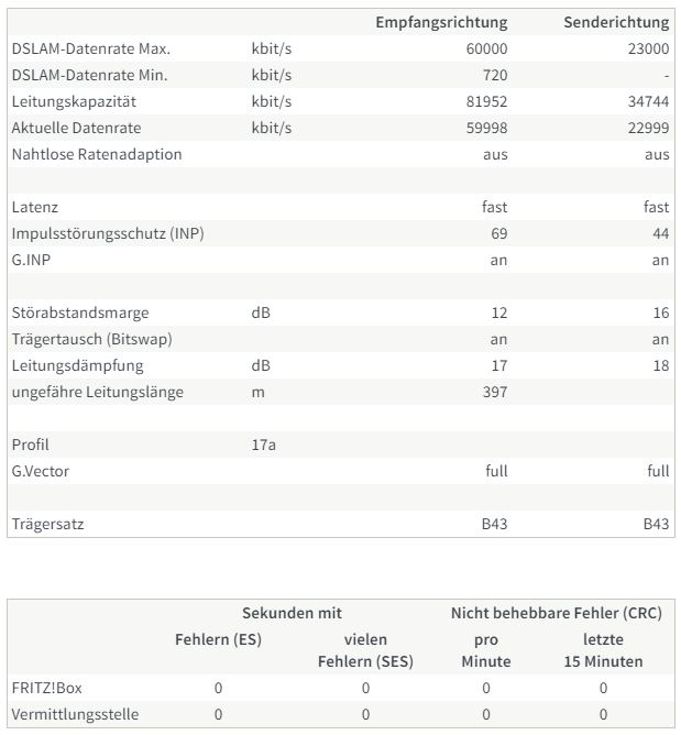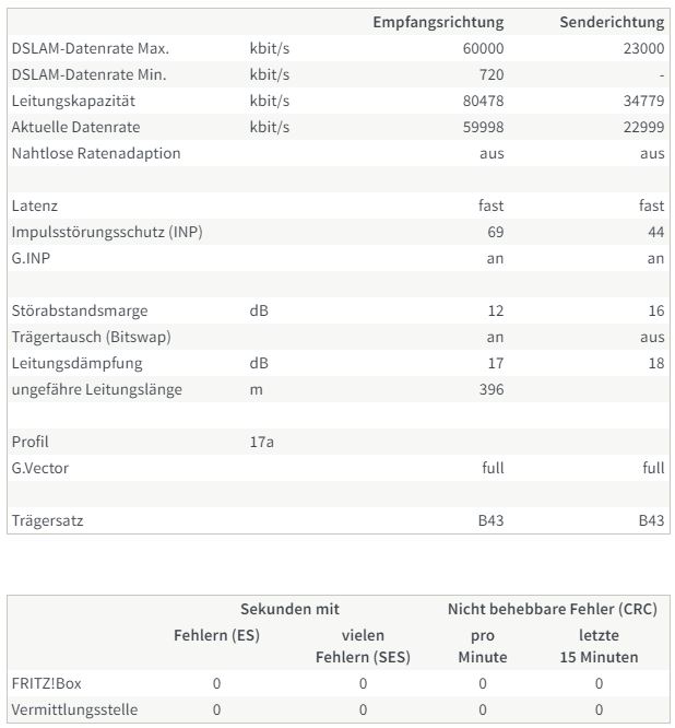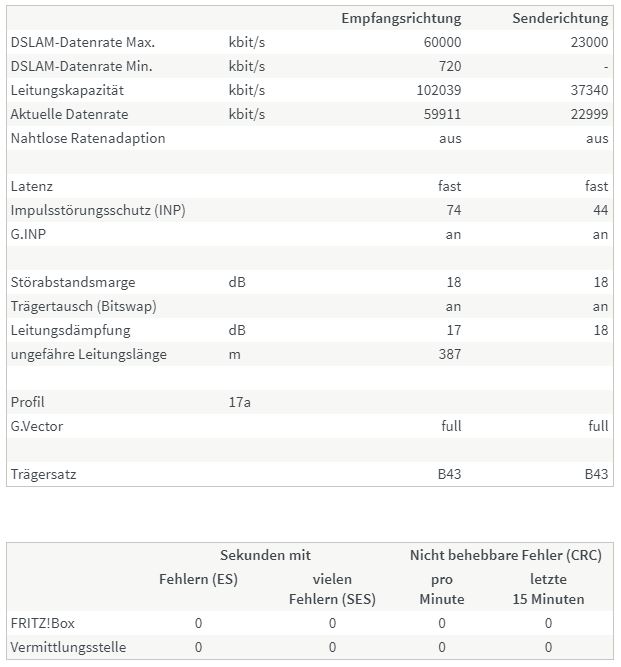 - Messung ab TAE: 105.000 Kbit/s down; ??? Kbit/s up