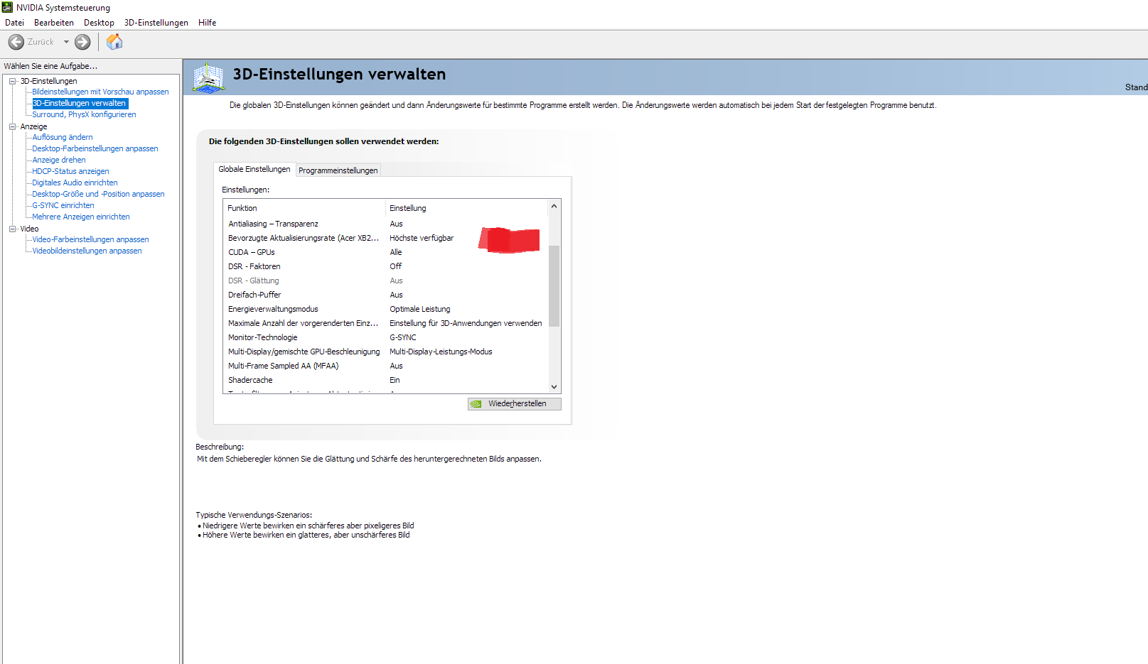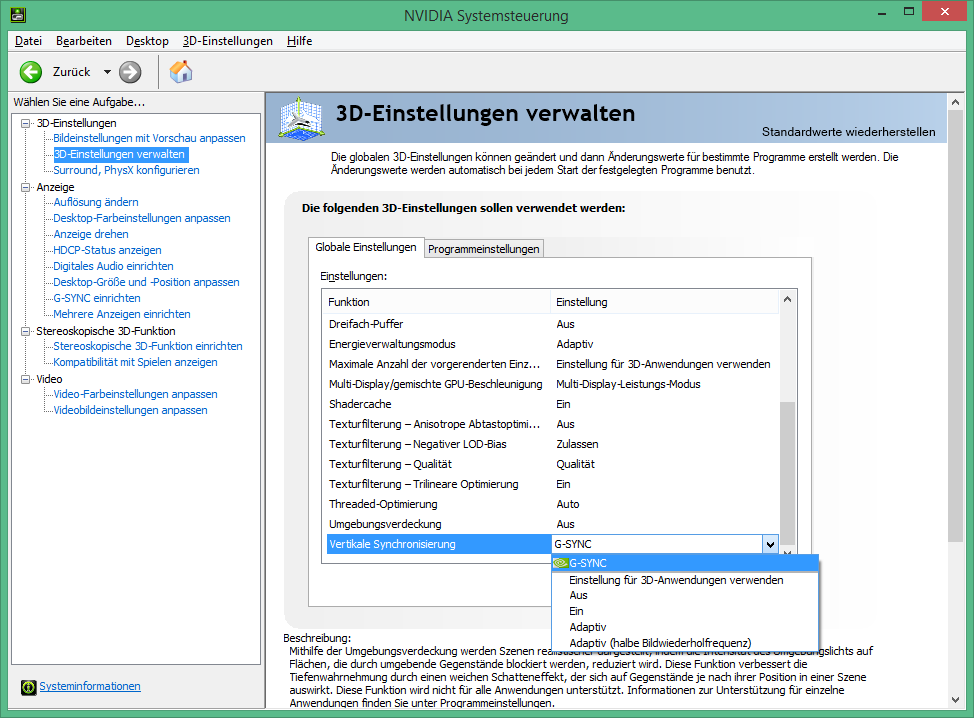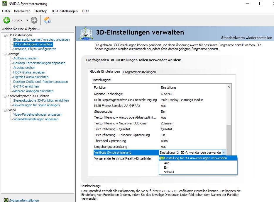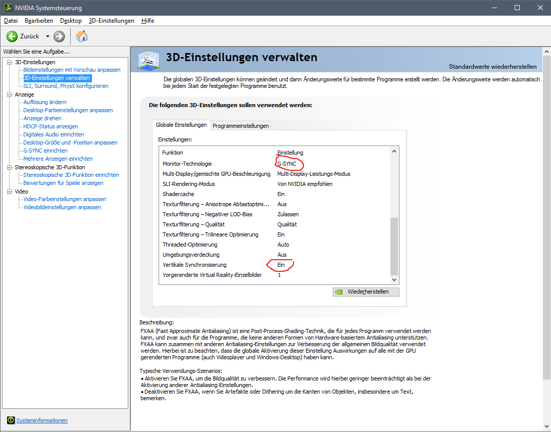 Aber ich habe ohne Vsync extremes Tearing. Ich stelle ich im Nvidia Treiber V Sync auf "3D Einstellung verwenden" und schalte G Sync an, kommt es in allen Spielen zum Tearing wenn ich im Spiel Vsync ausmache. Ich habe 60FPS. Beigelegte Kabel ist angeschlossen und Grafikkarte ist die 980ti