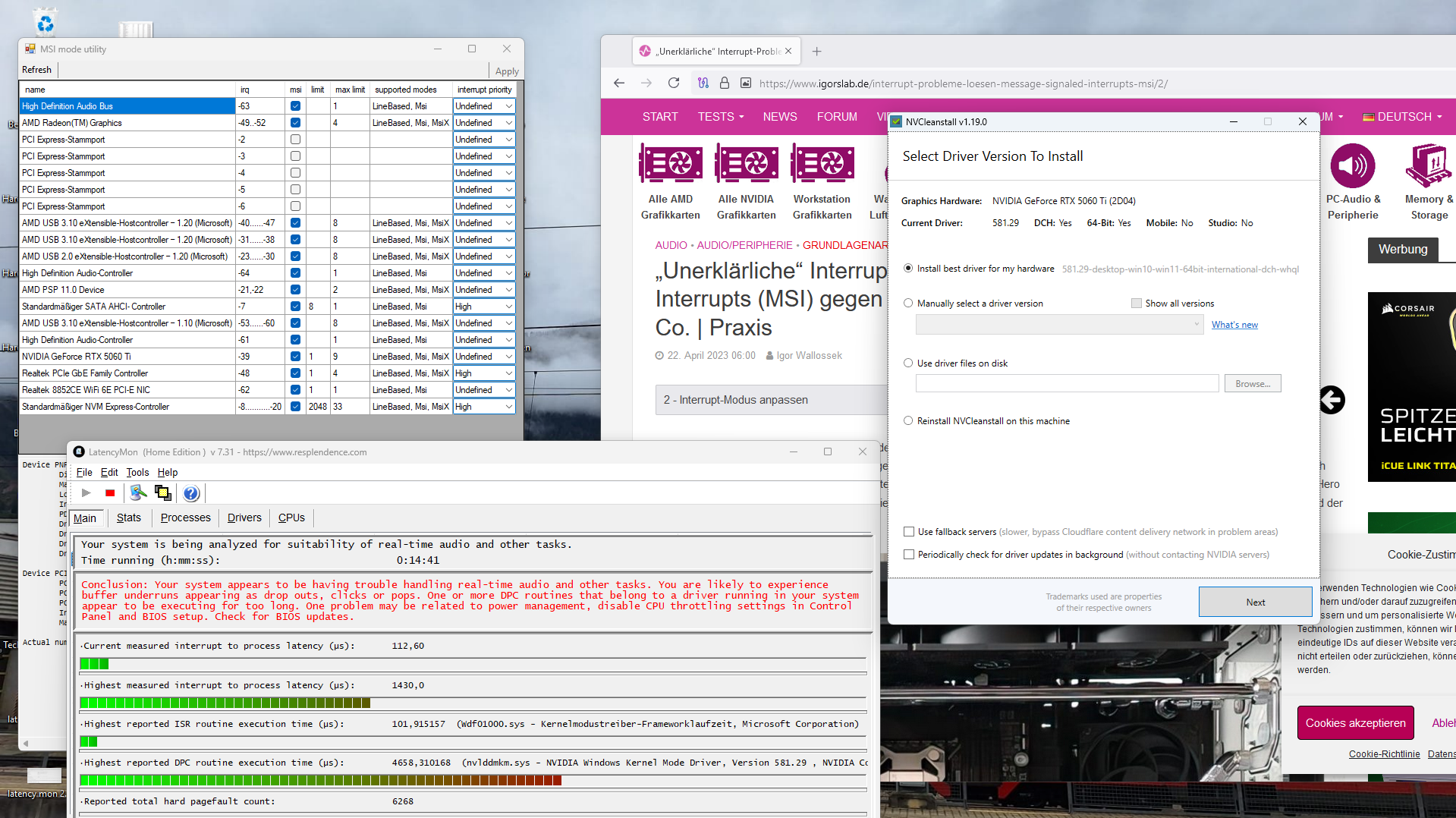 Das MSI Tool zeigt doch an, dass MSI für den Nvidia Grafiktreiber und dem HD-Audio Treiber aktiviert ist. Also bei dir ist alles schick mit dem MSI Interrupt-Handling, womit wir wieder beijaneeek schrieb:Oder doch das nächste Problem??