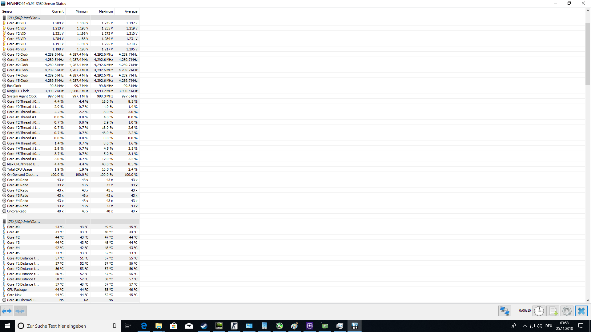 sry dann falsch gelesen mein fehler, ich hab bei den Energie Optionen auf Höchstleistung gestellt bei mir wird der i7 8700 laut taskmanager mit 4,3ghz knapp angezeigt