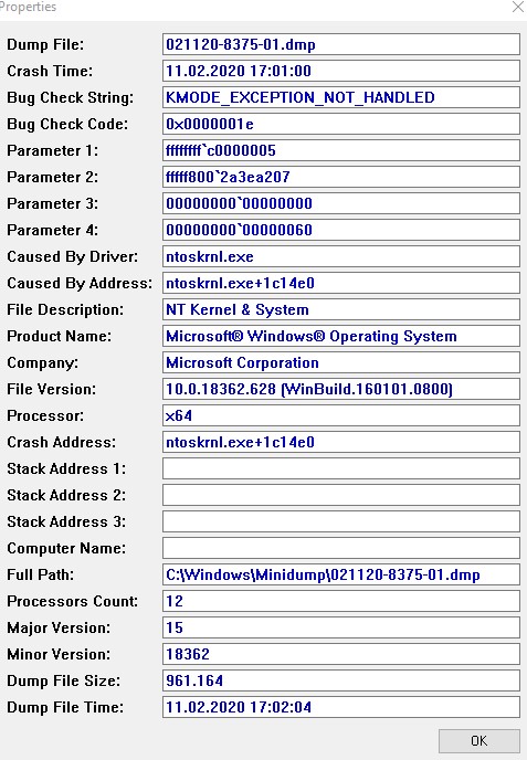 Anbei findet ihr nochmal die letzte Mini DMP Datei vll. kann da jemand was mit anfangen.