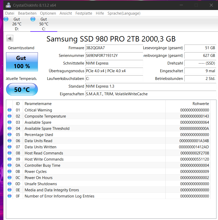 Neue SSD ist die Samsung SSD 980 Pro.