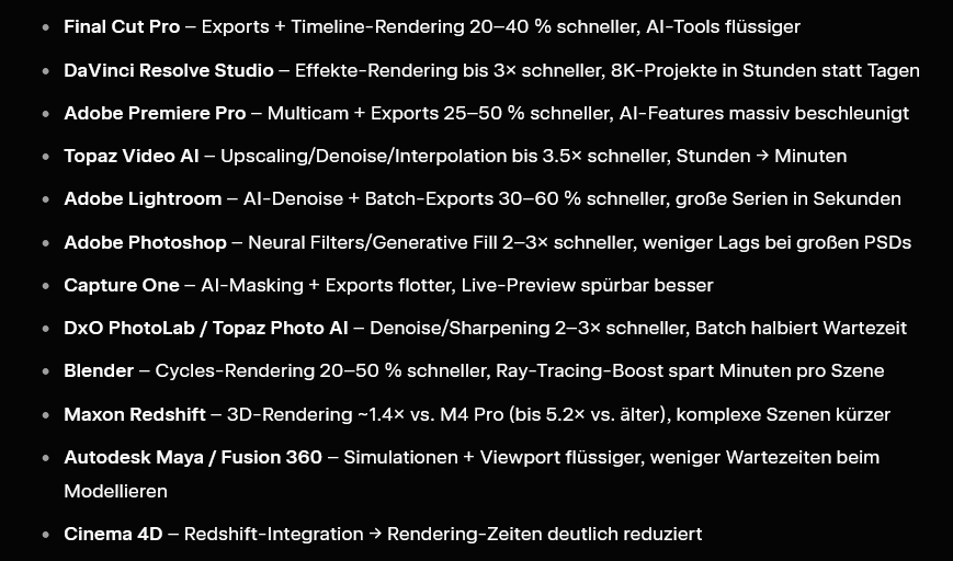 Naja. Zu erwarten. Sweet-Spot war jetzt der M4 in meinen Augen. Ggü. dem M1 Max ist der mehr als doppelt so schnell geworden.