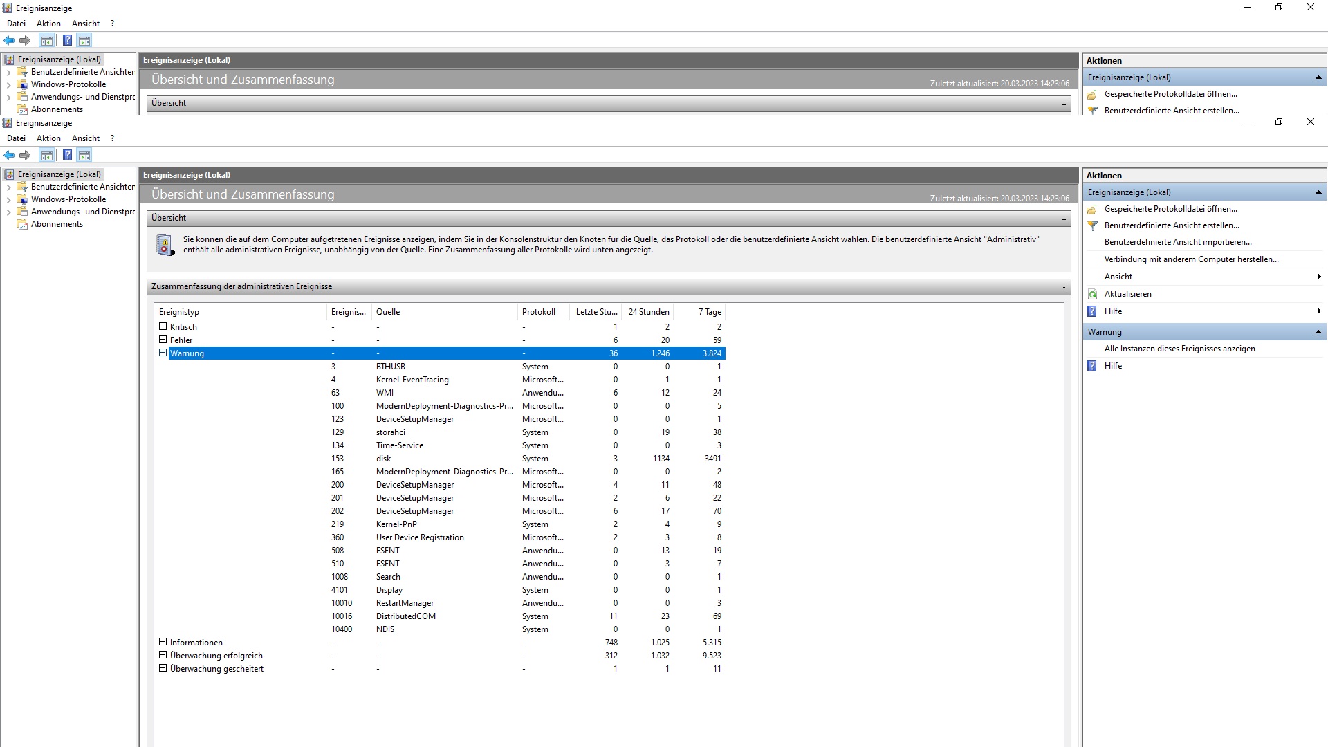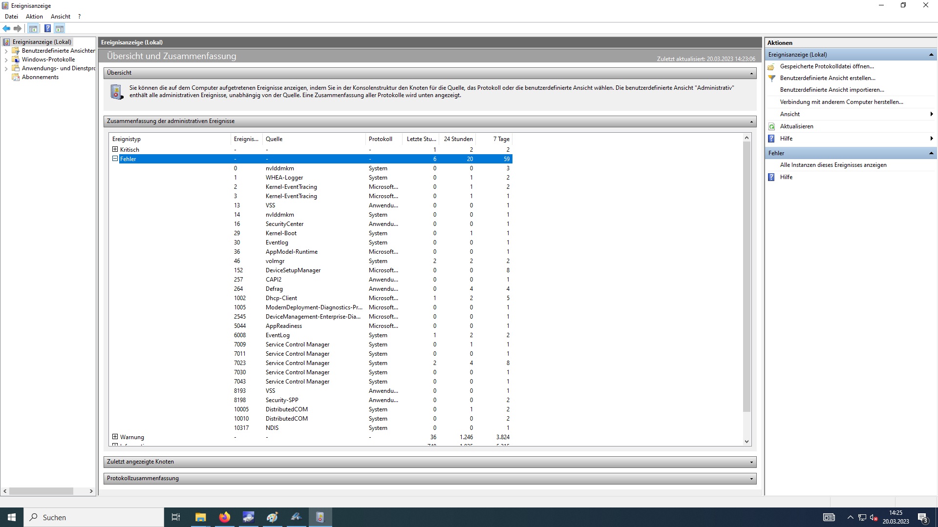 Schau dir die disk-Fehler und storahci in der Ereignisanzeige einzeln, genauer an. Was steht da drin? WHEA-Logger am besten auch noch dazu, sind nur zwei in den letzten 7 Tagen.