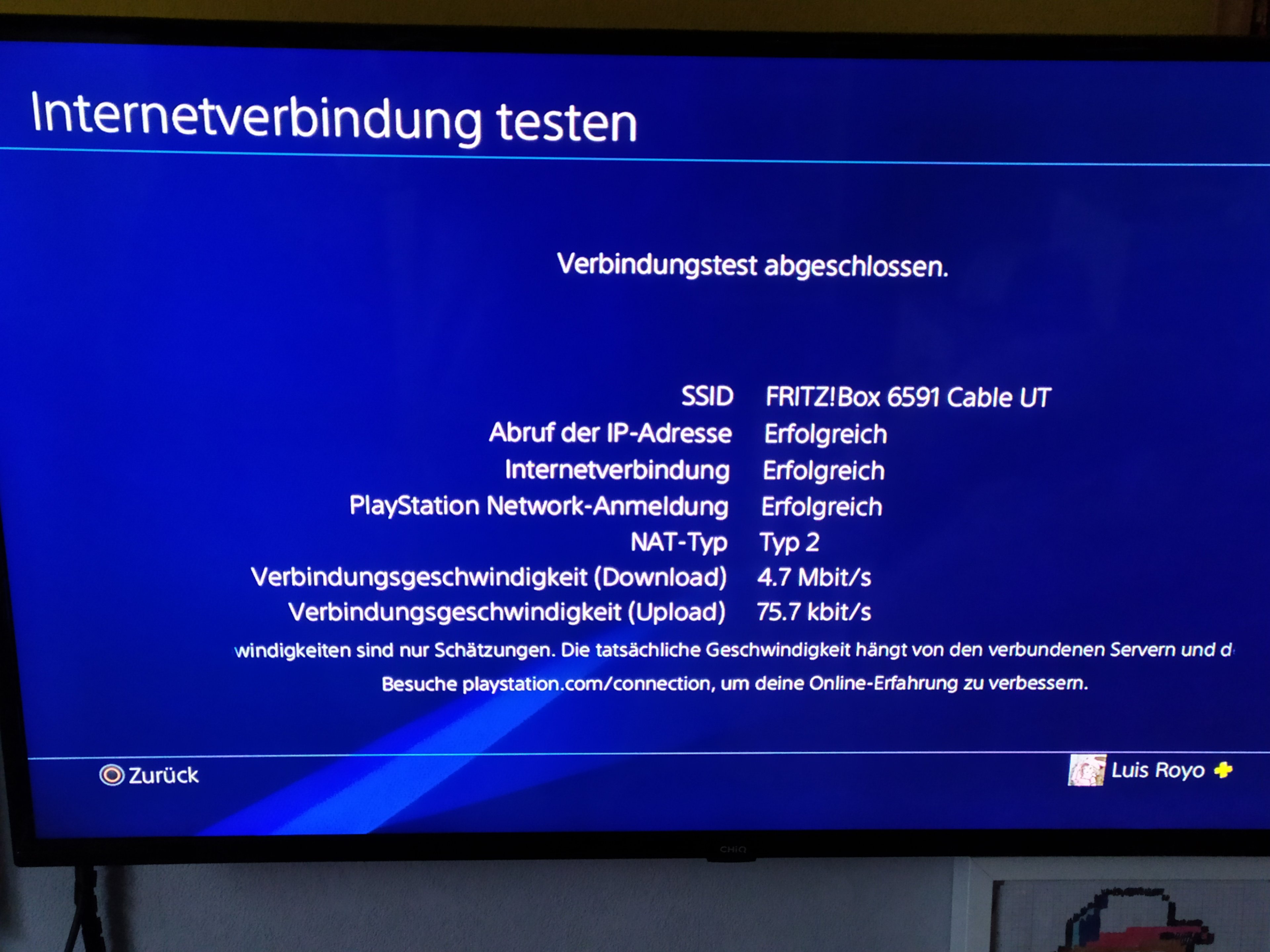 Normalerweise zeigt die Web-Oberfläche der FRITZ!Box auch alle WLAN-Clients an. Bin mir nicht sicher, ob die FRITZ!App das kann. Daher bitte mal dort schauen, dort siehst man dann auch welche Geschwindigkeit tatsächlich anliegt und ob die PlayStation 4 überhaupt über den WLAN-Repeater verbunden ist.luisroyo schrieb:Mit seiner PS4 kommt er gerade mal auf 10mbit/s.