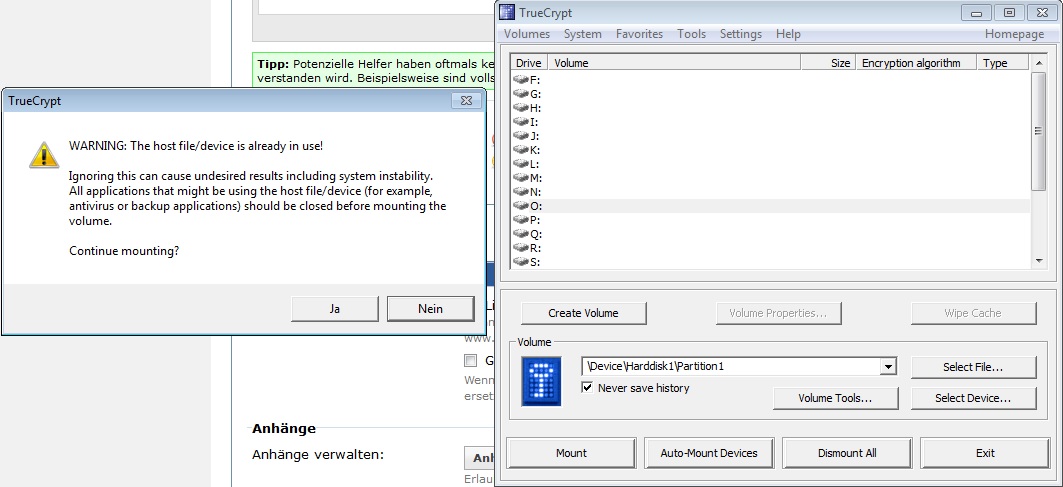 nachdem ich einen neuen Rechner bekommen habe und ich die alten Festplatten eingebaut habe bekomme ich folgenden Fehler wenn ich mit TrueCrypt meine Dateien mounten will.