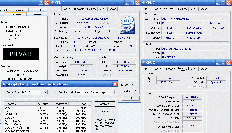 Im Gegensatz zu Core scheinen die Athlon64 den Twofish-Kode geradezu zu hassenDuff_05 schrieb:AMD Athlon 64 x2 5000+@3,1 GHZ