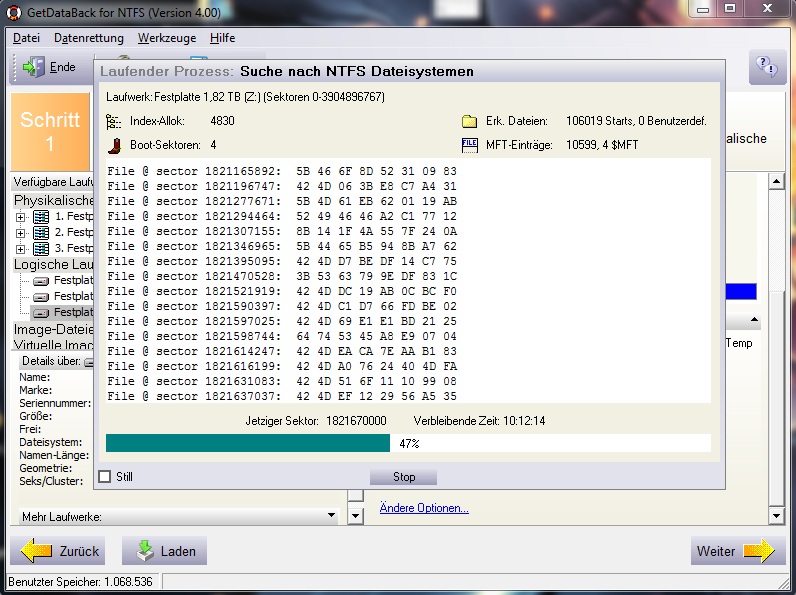 Mit dem Unterschied, dass die gefundenen Daten 1TB umfassen und alle nur den Namen "Unbekannt..." besitzen!