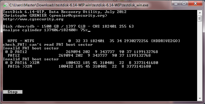 Bringt TestDisk in meinem Fall etwas? Habe es für beide Festplatten einmal durchlaufen lassen (Screen für 500GB ist angefügt). Der Test für die 1,5 TB Festplatte ist erst bei 75% (momentaner Stand als Bild angefügt). Beide Tests sind noch offen (d.h. ich könnte an der Stelle vom Screen weitermachen).