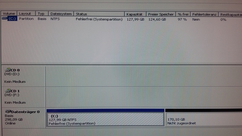 Vor der Formatierung war der als "Festplatte D:" angezeigt - wenn man ihn angeklickt hat, kam "Wollen Sie den Datenträger formatieren". Jetzt wird er mir nur noch in der "Computerverwaltung" angezeigt. Während "C:" als "Fehlerfrei (Systempartition)" ausgewiesen wird, steht bei dem anderen "Nicht zugeordnet" und als Partitionstyp "Master Boot Record (MBR)"