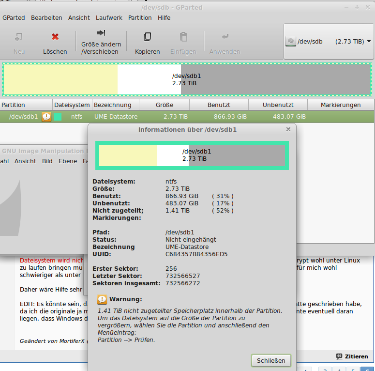 Irgendwie zerstört dd nun das ntfs-Dateisystem der Zielfestplatte immer, wenn ich für das TrueCrypt Volume als Gerätebezeichnung "/dev/sdb" oder "/dev/dm-0" verwende.