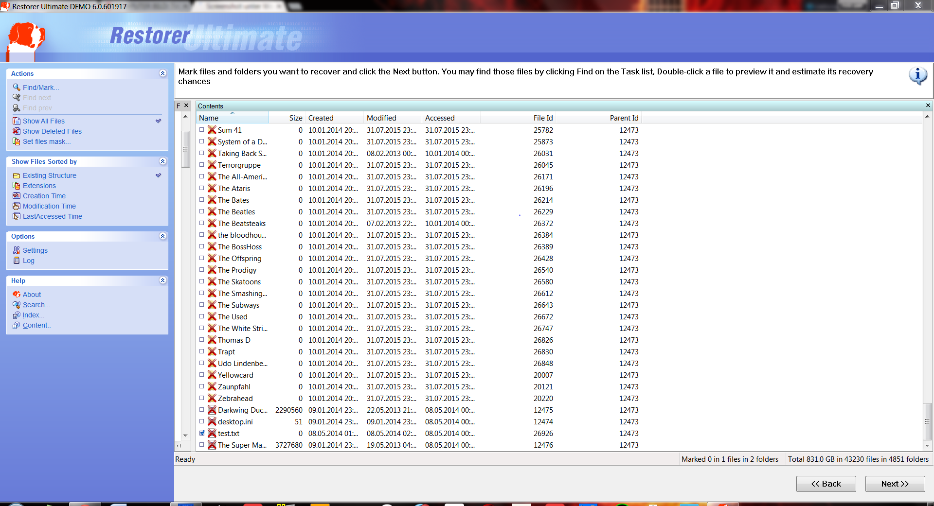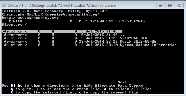 Bei mir erscheinen sowohl Ordner als auch Dateien in TestDisk, allerdings ist die Reihenfolge wild durcheinander.