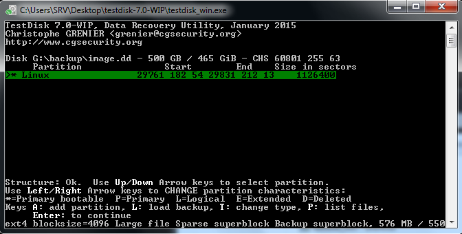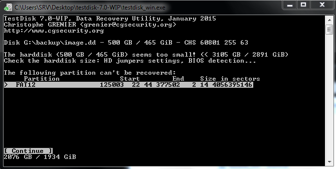 3.0 mit TestDisk ein Image erstellt (damit ich nicht noch mehr kaputt mache)
