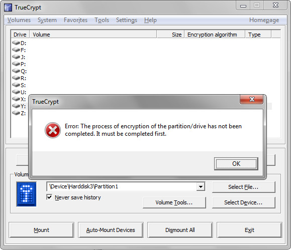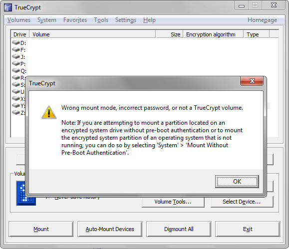 3. Versuch die Partition mit "without pre-boot authentication" zu maunten
