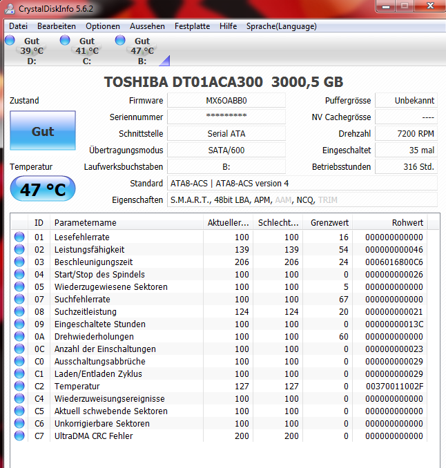 Nach ca. 26% kam jedoch eine Fehlermeldung, wonach Truecrypt die Verschlüsselung nicht fortsetzen kann, weil es auf fehlerhafte Sektoren trifft. Die 26% sind in etwa 746 GB, also das, was Windows manchmal bei 3TB Festplatten "erkennen kann". Vielleicht hilft diese Info einem von Euch.