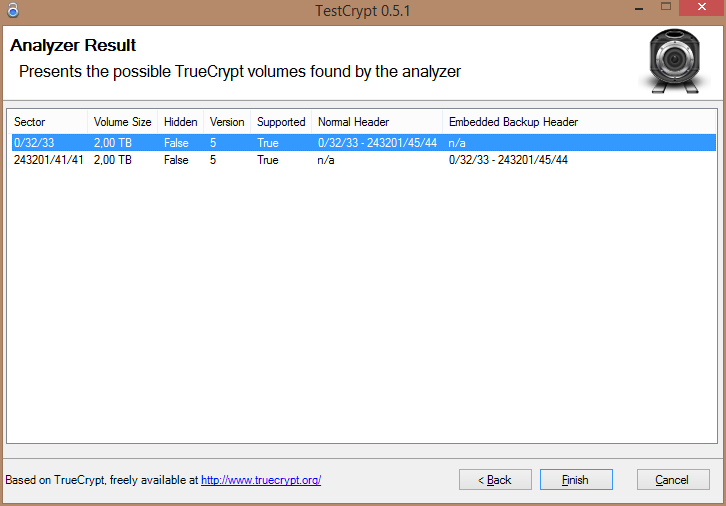 Ich habe damals einen BackUp Header erstellt und habe die Datei für diese Festplatte noch. Ich habe leider auch schon die Option in TC verwendet um diesen wiederherzustellen, nur dann wird nach dem Mounten gemeldet, dass die Partition leer ist.