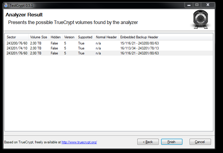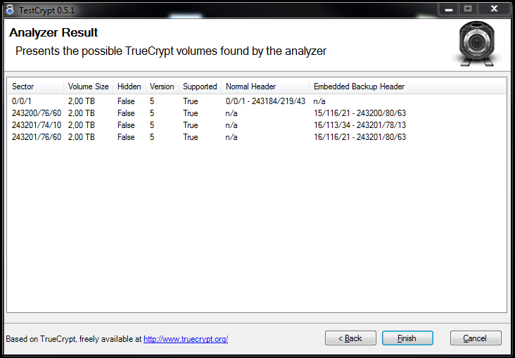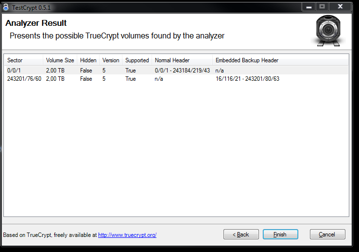 Ich habe dann TestCrypt runtergeladen um andere Volumen Header zu finden.