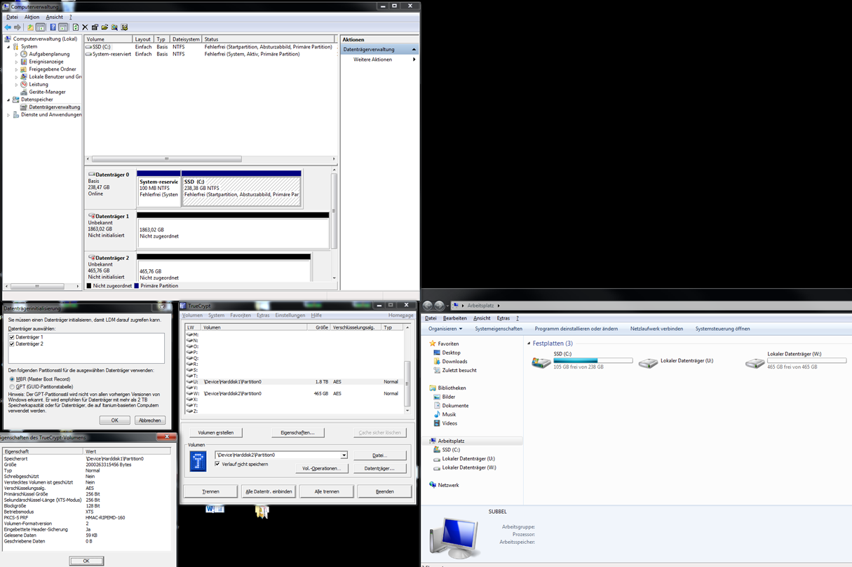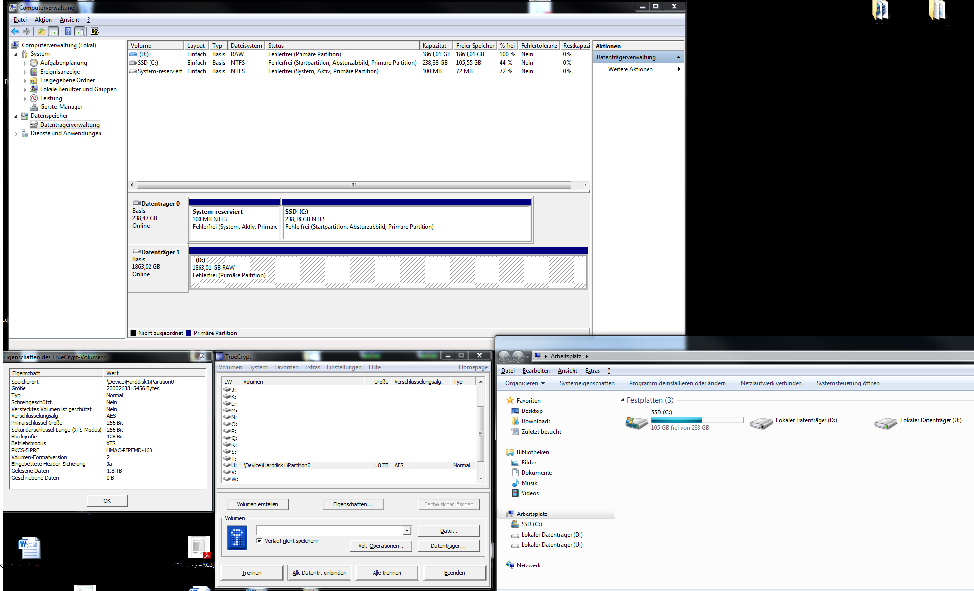 Ich habe eine 2TB Festplatte, diese war komplett verschlüsselt. Kein Container, kein Hidden Volume.