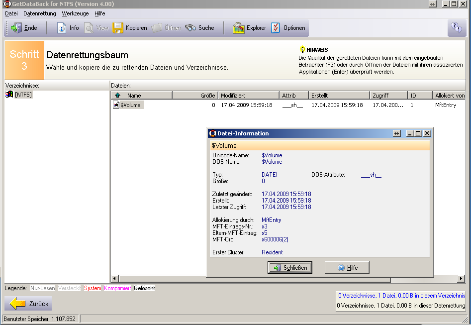 wohl das gleiche wie Du im Vorpost - GetDataBack