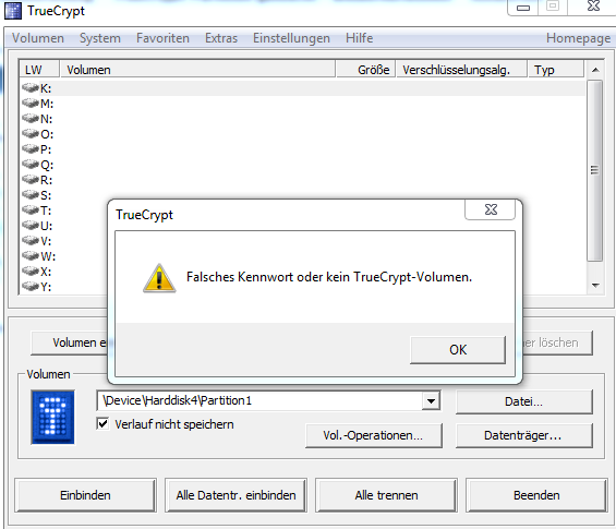 Irgendwann kommentierte TrueCrypt das mit einer Fehlermeldung