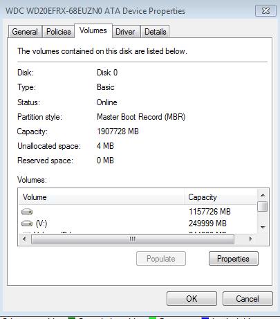 Platte: WDC Red 2Tera mit 4 Partitionen