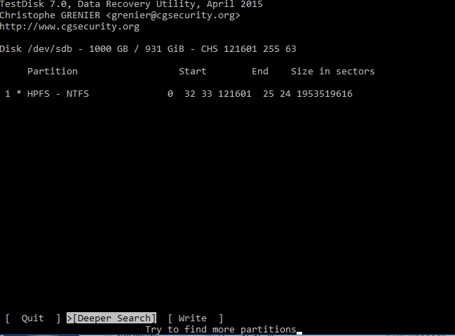Testdisk hat nichts geschrieben, da stehen immer noch die alten Werte. Kannst du die Schritte wiederholen und nach [Write] genau aufpassen, ob dort irgendeine Fehlermeldung bzw. Sicherheitsabfrage erscheint?
