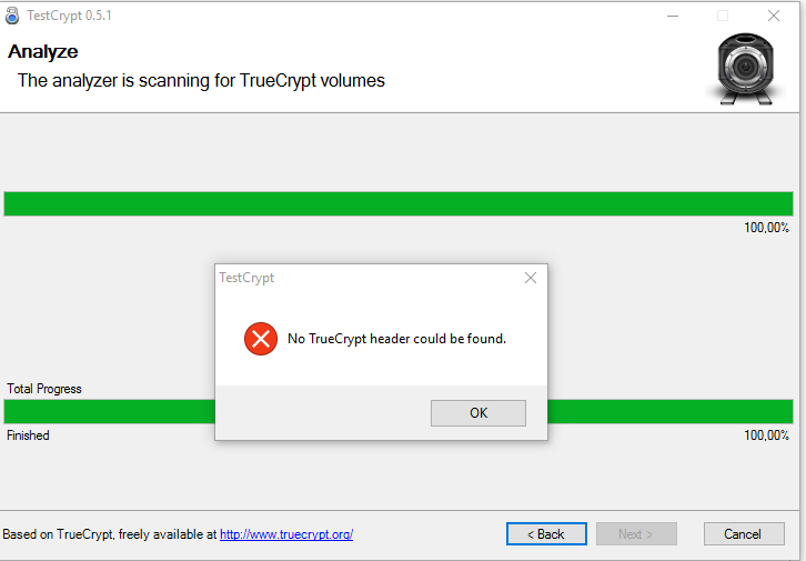 5. Backup Header mit Testcrypt gesucht mit „Automatic“ gesucht -> No header found