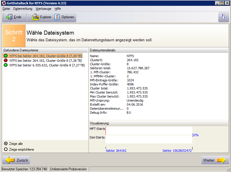 Das Ergebnis des Festplatten-Scans (physikalisches Laufwerk) sieht wie folgt aus: