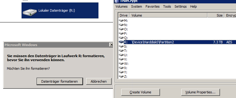 TrueCrypt-Partition gelöscht, Win-Partition erstellt, CHDSK laufen, mit 0 überschrieb