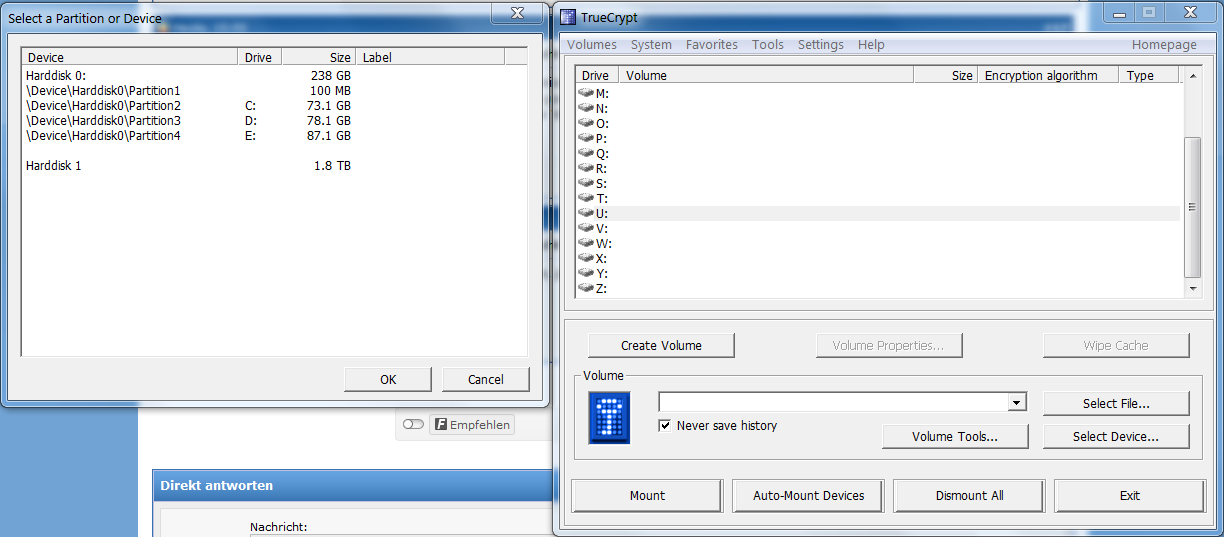 Und dann der schock, ich habe nicht die beabsichtigte platte sondern meine mit truecrypt 7 verschlüsselte "work" partition gelöscht.