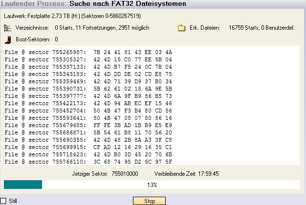 Aus lauter Verzweiflung lasse ich im Moment GetDataBack for FAT laufen. Dauert ewig aber er tut so als würde er was finden